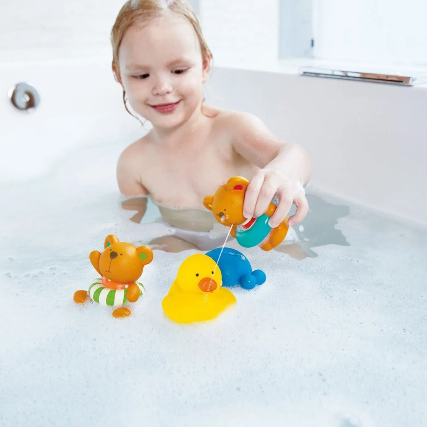 Игрушки для купания Hape Тедди и его друзья преобразят процесс купания и покорят кроху. Эти маленькие друзья, любящие купаться, готовы к любым играм в ванне! Проведите соревнование между ними: кто быстрее впитает воду, у кого струя воды выходит дальше и так далее.