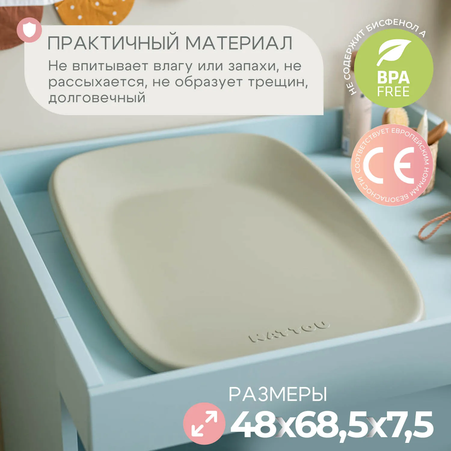 Нескользящая поверхность и высокие бортики создадут безопасное пространство. Подходит для пеленальных столиков стандартного размера 50x70 см.