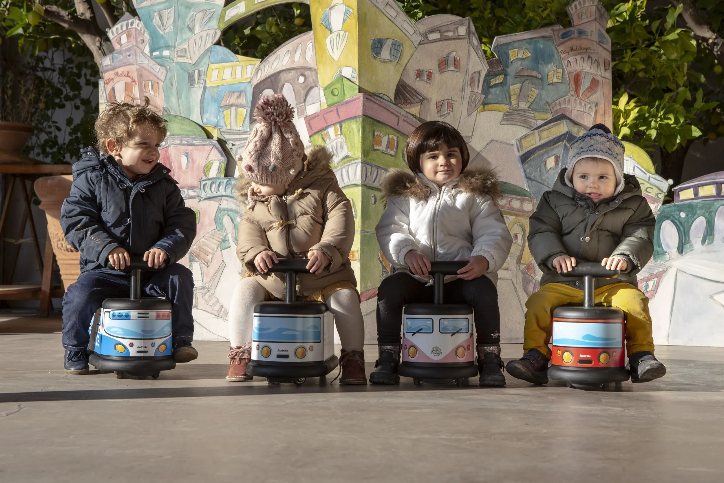 Каталка ездит с помощью четырёх небольших колёс, ребёнок без проблем сможет самостоятельно отталкиваться и ехать. Передние колёса вращаются на 360°, каталка очень манёвренная, ей легко управлять даже в маленьком пространстве. Каталки Italtrike — лучший продукт для первых самостоятельных путешествий малыша как в доме, так и на улице.