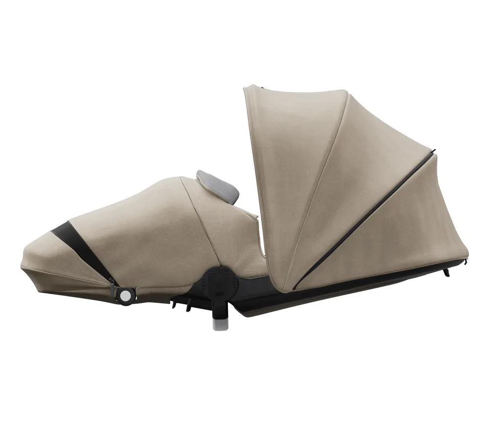 В коконе малыша нужно пристегивать ремнями безопасности. Кокон можно сложить вместе с шасси коляски Hub/Hub+.