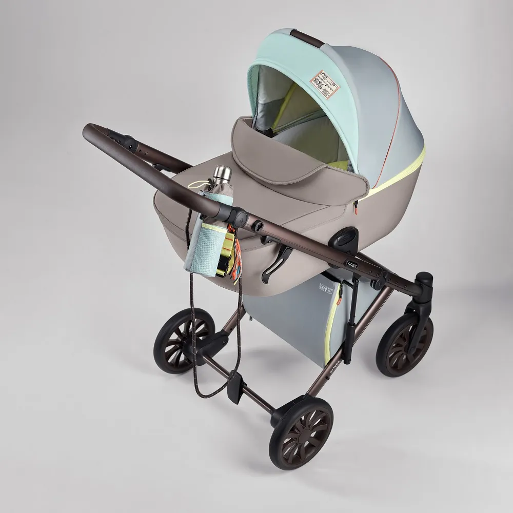 Усовершенствованное сложение коляски Anex e/type теперь позволяет собрать ее вместе с установленным прогулочным блоком. В сложенном виде раму блокирует боковой фиксатор X-Lock, не давая ей возможности самопроизвольно раскрыться. Для удобства родителей предусмотрены регулируемая ручка с накладкой из эко-кожи, крепления для подстаканников, модный вместительный рюкзак вместо привычной сумки для коляски и багажная корзина закрытого типа. Ручка регулируется в нескольких положениях, позволяя каждому родителю найти для себя комфортный уровень. Ключи, кошелек, телефон, влажные салфетки и другие важные мелочи поместятся в стильном рюкзаке. Багажная корзина выдерживает вес до 5 кг, благодаря крышке все перевозимые вещи сохранятся в чистоте и не выпадут из коляски. Кроме этого, в комплекте еще бутылочка для воды с тканевым чехлом.