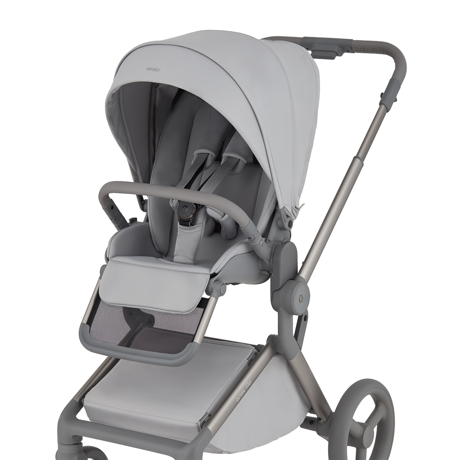 Рама складывается вместе с сиденьем, расположенным в обоих направлениях, что позволяет родителям удобно переносить коляску при необходимости. Функция самостоятельного стояния в сложенном виде обеспечивает экономию места.