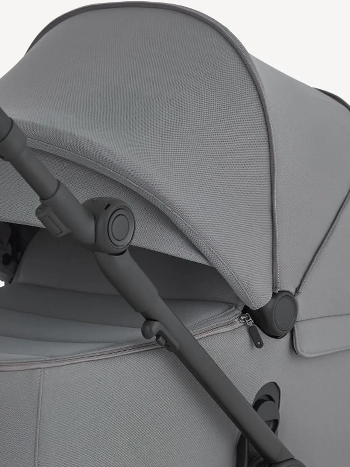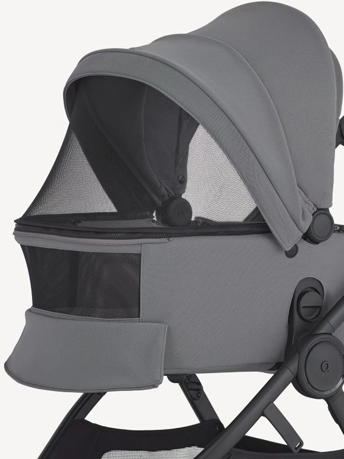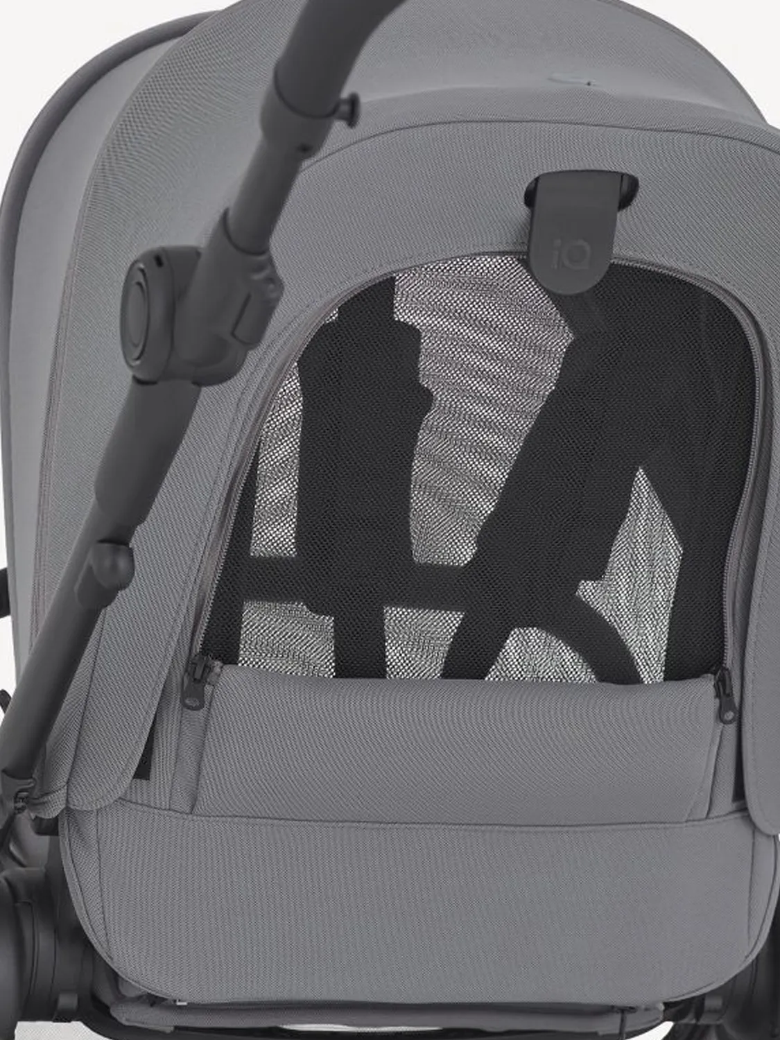 Эргономичная люлька предназначена для малыша с рождения до 9 кг. Двойная вентиляция обеспечивает надежную циркуляцию воздуха для комфортного и безопасного отдыха ребенка. Благодаря водоотталкивающей пропитке люлька защищена от попадания влаги, сохраняет сухость даже во время дождя. Чехол для ног имеет двустороннюю молнию и магнитную систему складывания. Внутри люлька выполнена из высококачественной дышащей бамбуковой ткани, которая для удобства использования крепится на молнии.Капюшон коляски 2 в 1 Anex iQ Basic с дополнительной секцией UV 50+ защищает от вредных солнечных лучей и позволяет использовать люльку даже в солнечные дни безопасно.