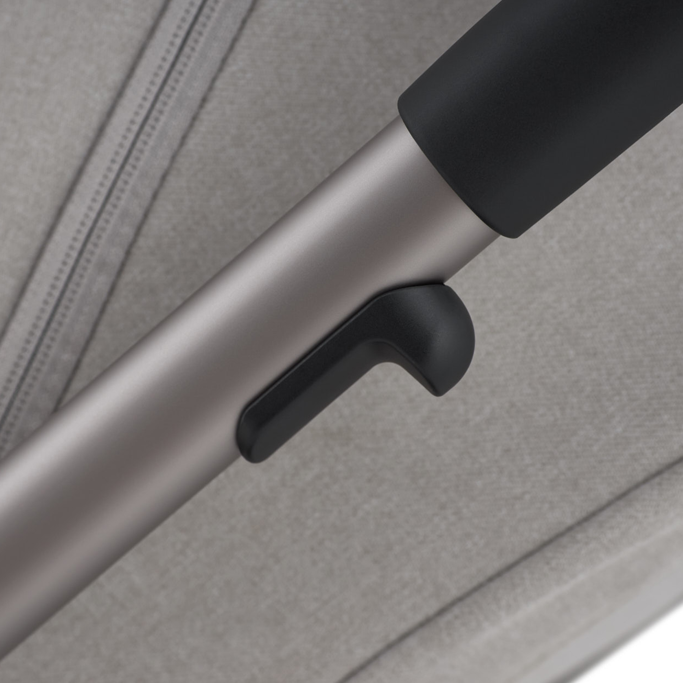 Шасси коляски 2 в 1 Anex iQ Premium имеет два положения ручки, что позволяет выбрать подходящую высоту для родителей разного роста. Прочная алюминиевая рама легко и плавно складывается благодаря механизму амортизации. Для удобства транспортировки на раме предусмотрена ручка.