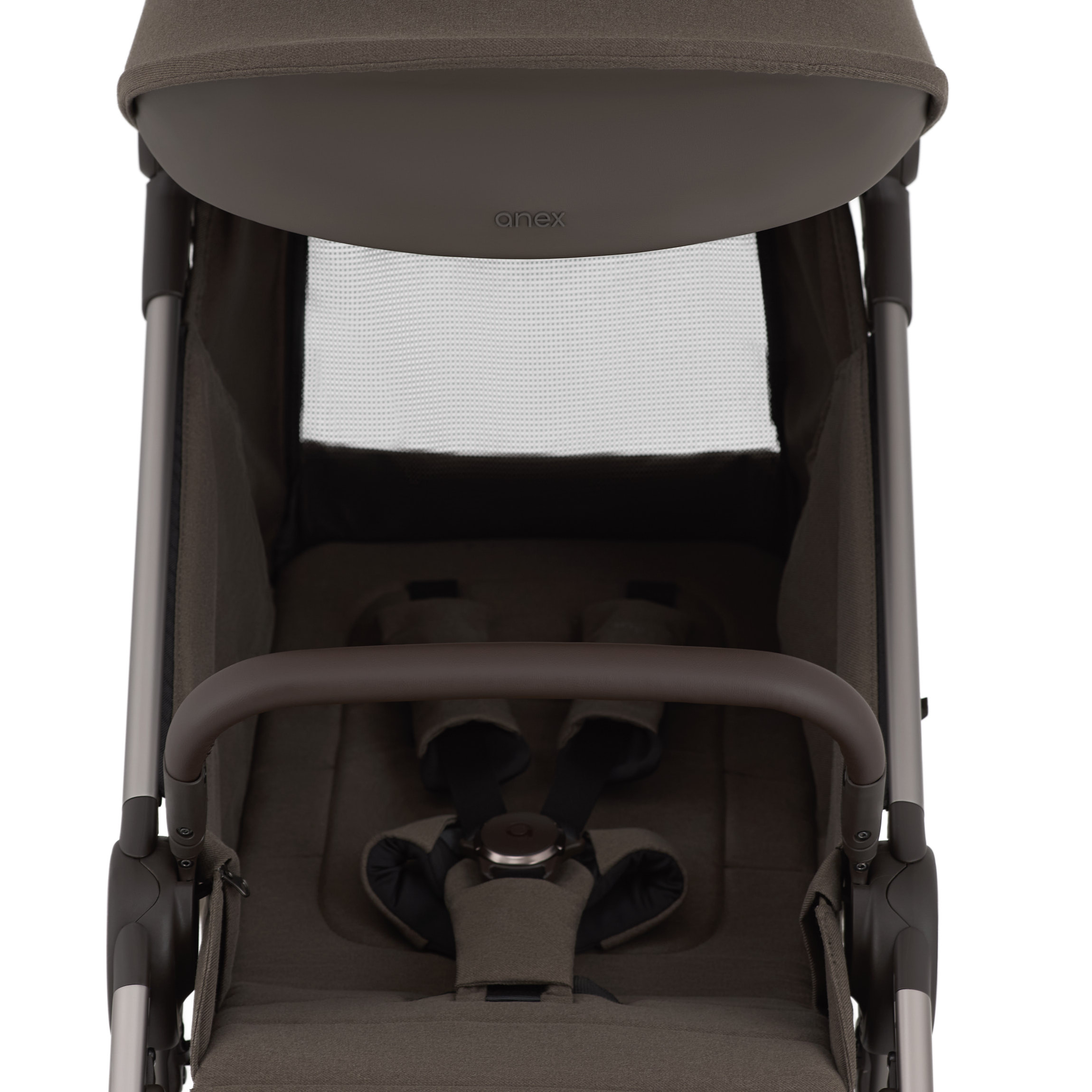 Разработчики Anex уделили модели Premium особое внимание ее внешнему виду, подчеркнув мелкие детали и безупречную отделку. Коляска выделяется премиальным текстилем, анодированной рамой и гладкой кожей PU. Ручка и бампер, отделанные кожей из микрофибры коричневого цвета, серебряные элементы на раме, матовые коричневые кнопки с мягкой на ощупь отделкой и 3D логотип на обивке придают модели Premium поистине неповторимый вид.