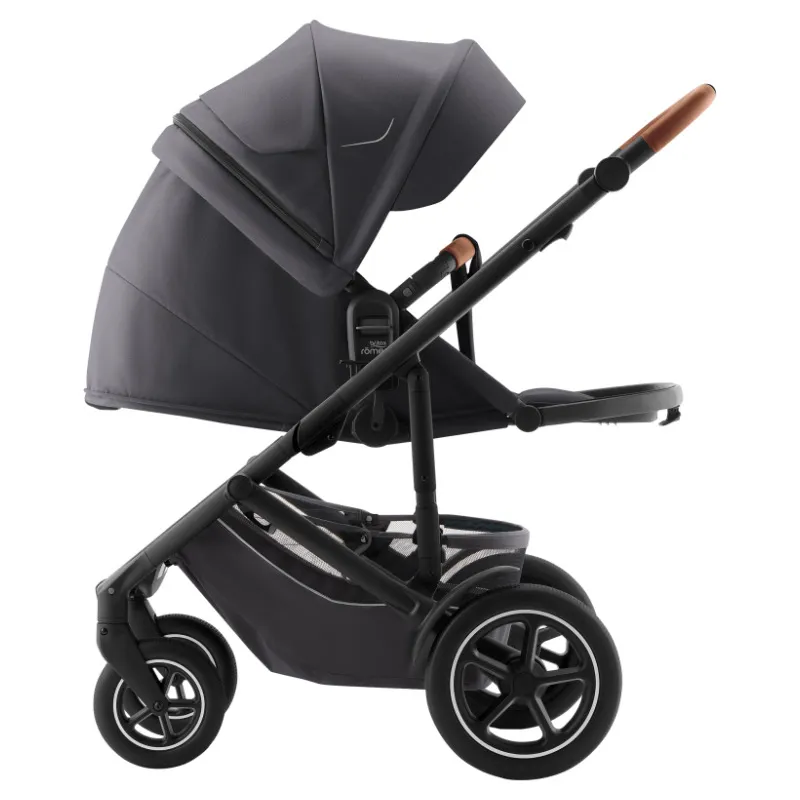 Дети растут быстро, и Britax Roemer Smile 5Z растет вместе с ними: коляска имеет две подножки. На сиденье и на шасси — чтобы ноги ребенка заняли комфортное и естественное положение.