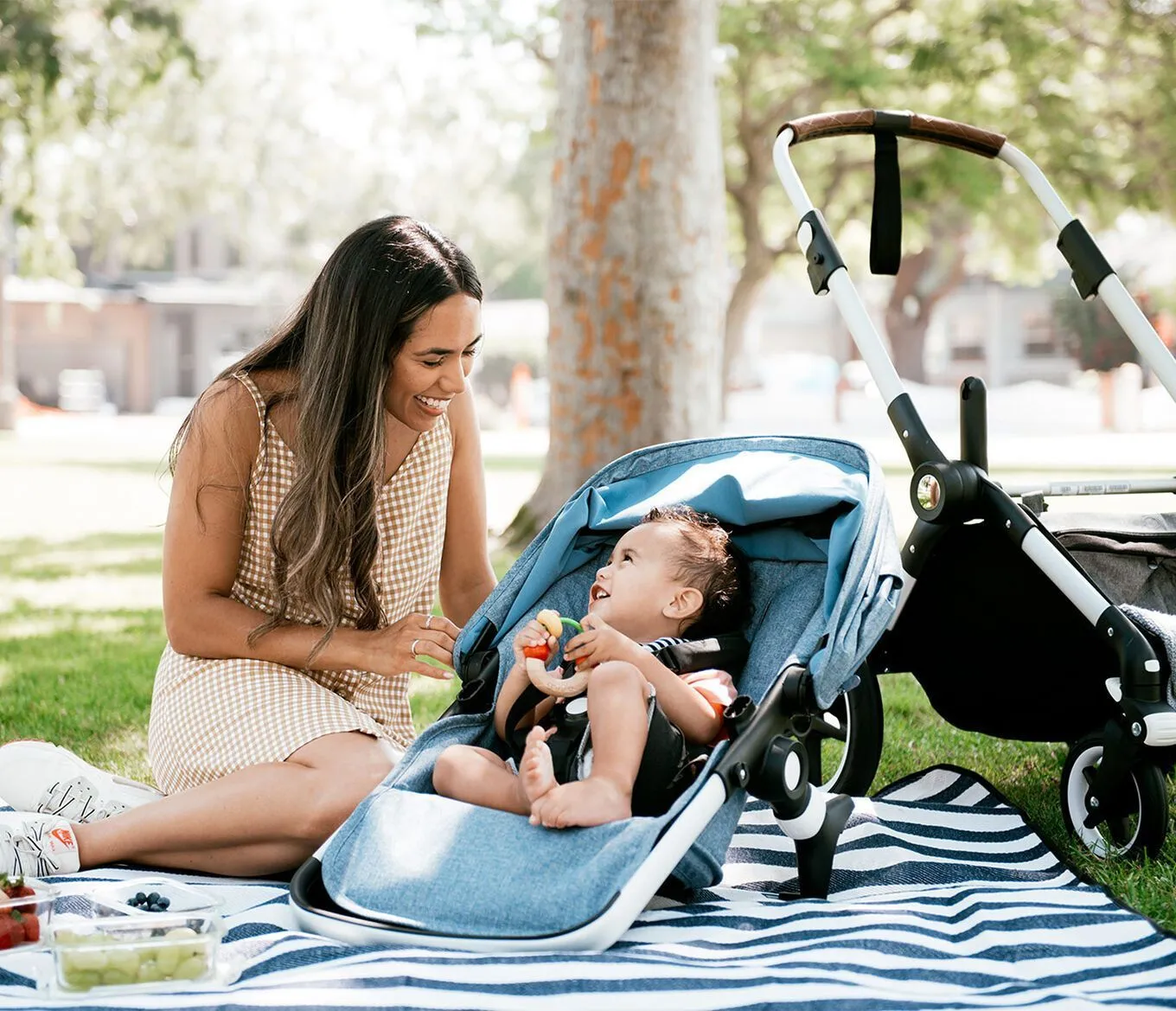 - большой солнцезащитный капюшон, дышащий матрасик и дождевик в комплекте