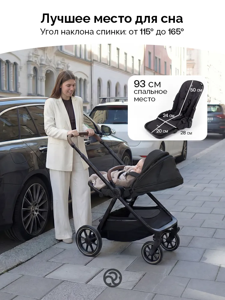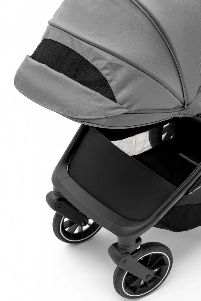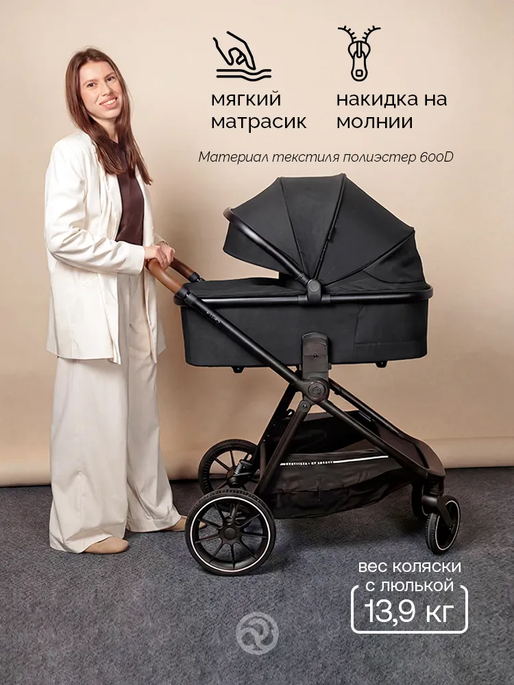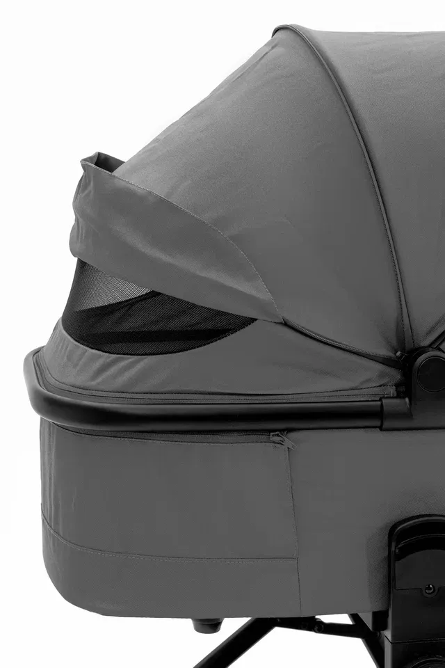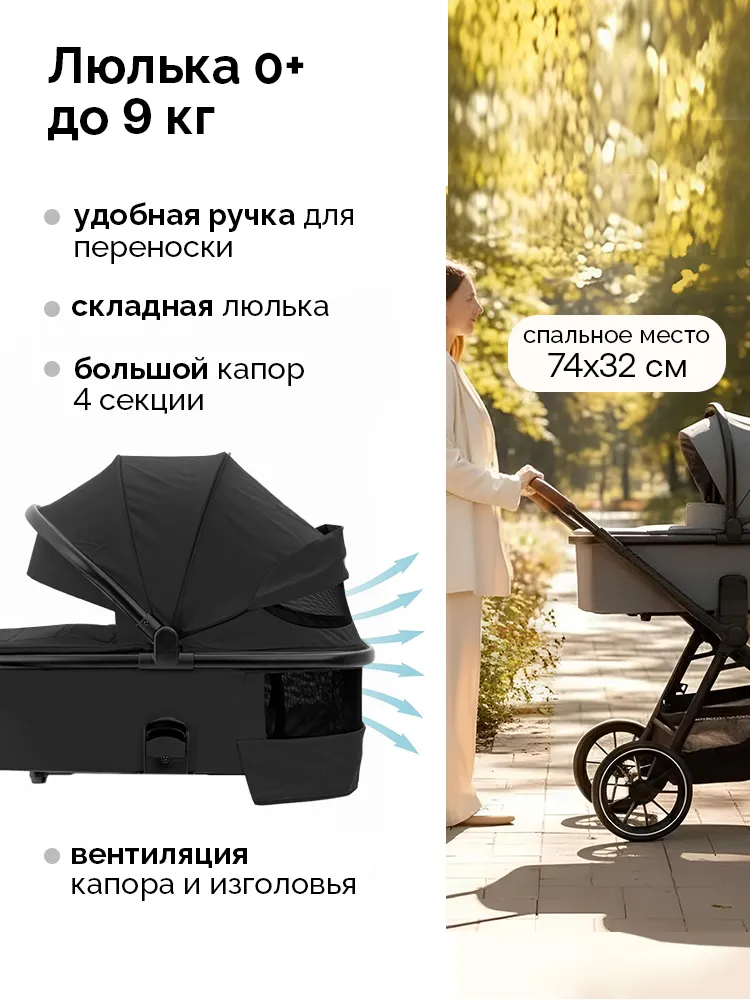 Просторная люлька с мягким матрасиком создаст у новорождённого ощущение нахождения у мамы на руках. Для защиты от солнца и ветра капюшон можно расширить, а для дополнительной циркуляции воздуха предусмотрена вентиляция капора и изголовья. Люлька компактно складывается, что облегчает хранение и транспортировку.