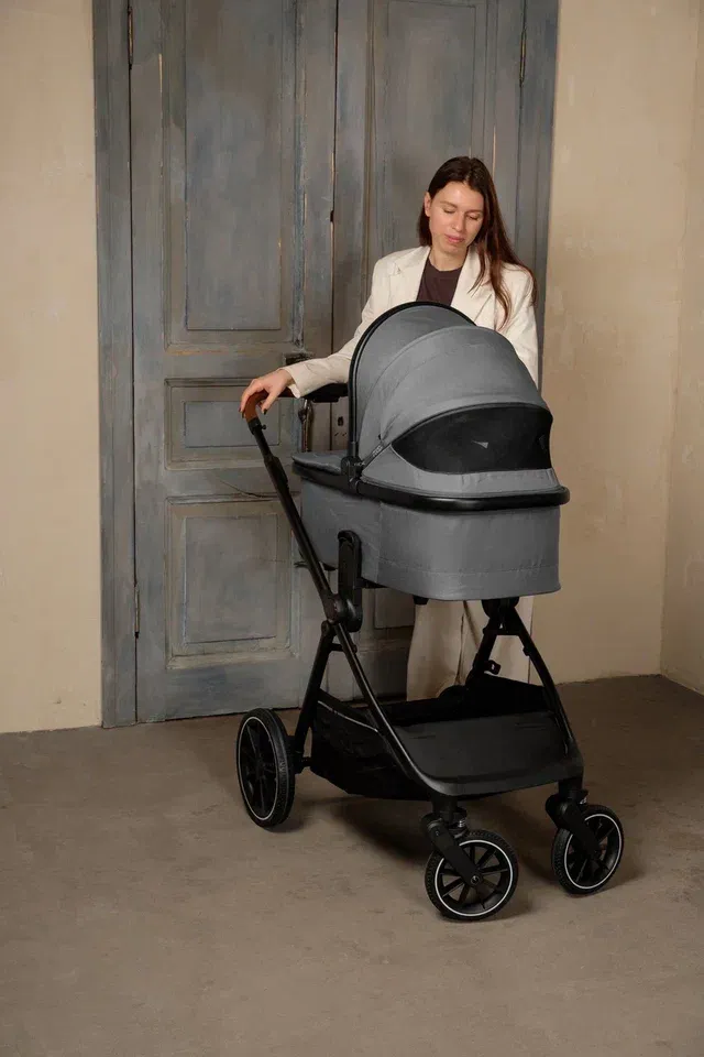 Уникальность коляски в высоком расположении люльки и сиденья, что обеспечивает оптимальную близость и контакт между родителем и ребенком. Телескопическая ручка регулируется на несколько положений по высоте, создавая комфорт на прогулках и невысокой маме, и высокому папе. Объемный складной капюшон оснащен защитой UPF50 +, который может быть расширен для максимальной защиты малыша в солнечные дни.