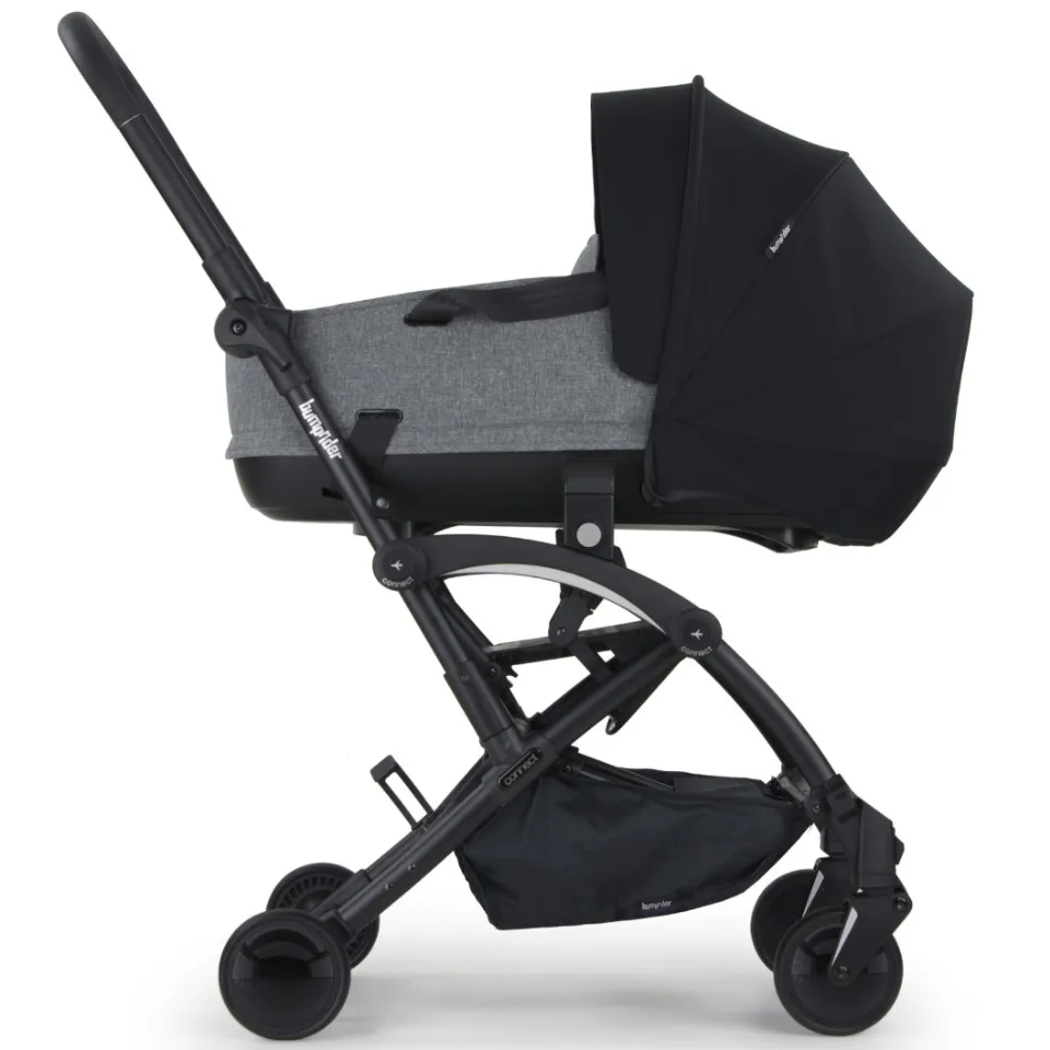 Bumprider Connect 3 представляет собой компактную, сверхманевренную коляску, предназначенную для детей с рождения до 4 лет — как в одиночном, так и в двухместном режимах. С рождения до достижения ребенком веса в 9 кг (примерно 6 месяцев) его можно перевозить в этом уютном спальном блоке. Для переноски люльки вместе с ребенком предусмотрены текстильные ремни. Создать комфорт для маленького пассажира в любое время помогают солнцезащитный капюшон с козырьком и накидка на ножки. Накидка с высоким отворотом пристегивается к бортам люльки на молнию, полностью защищая кроху от сквозняков.