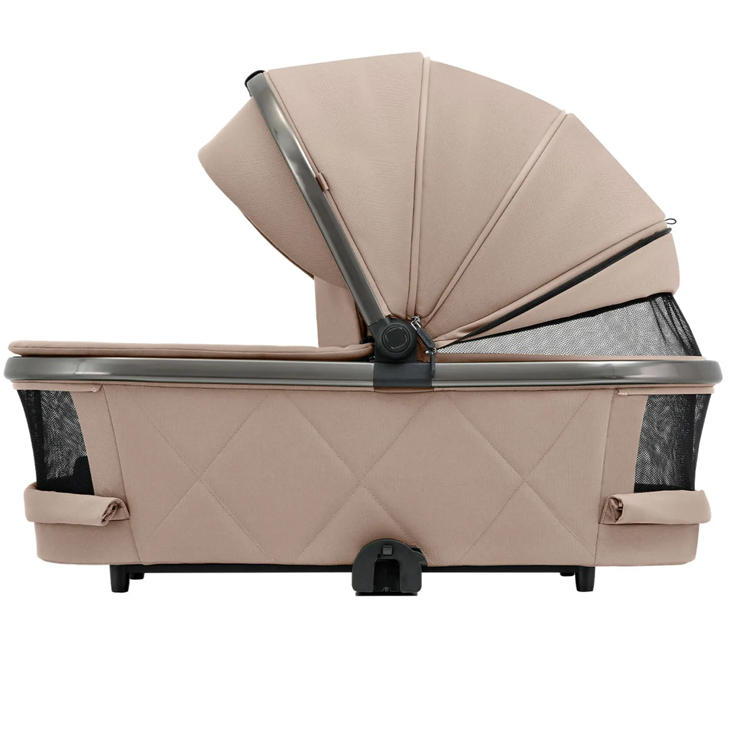 Просторная всесезонная люлька предназначена для детей от рождения и до 6-ти месяцев, весом не более 9 кг. Корпус люльки изготовлен из плотного многослойного текстиля, обладает водоотталкивающим эффектом и UPF50+.
