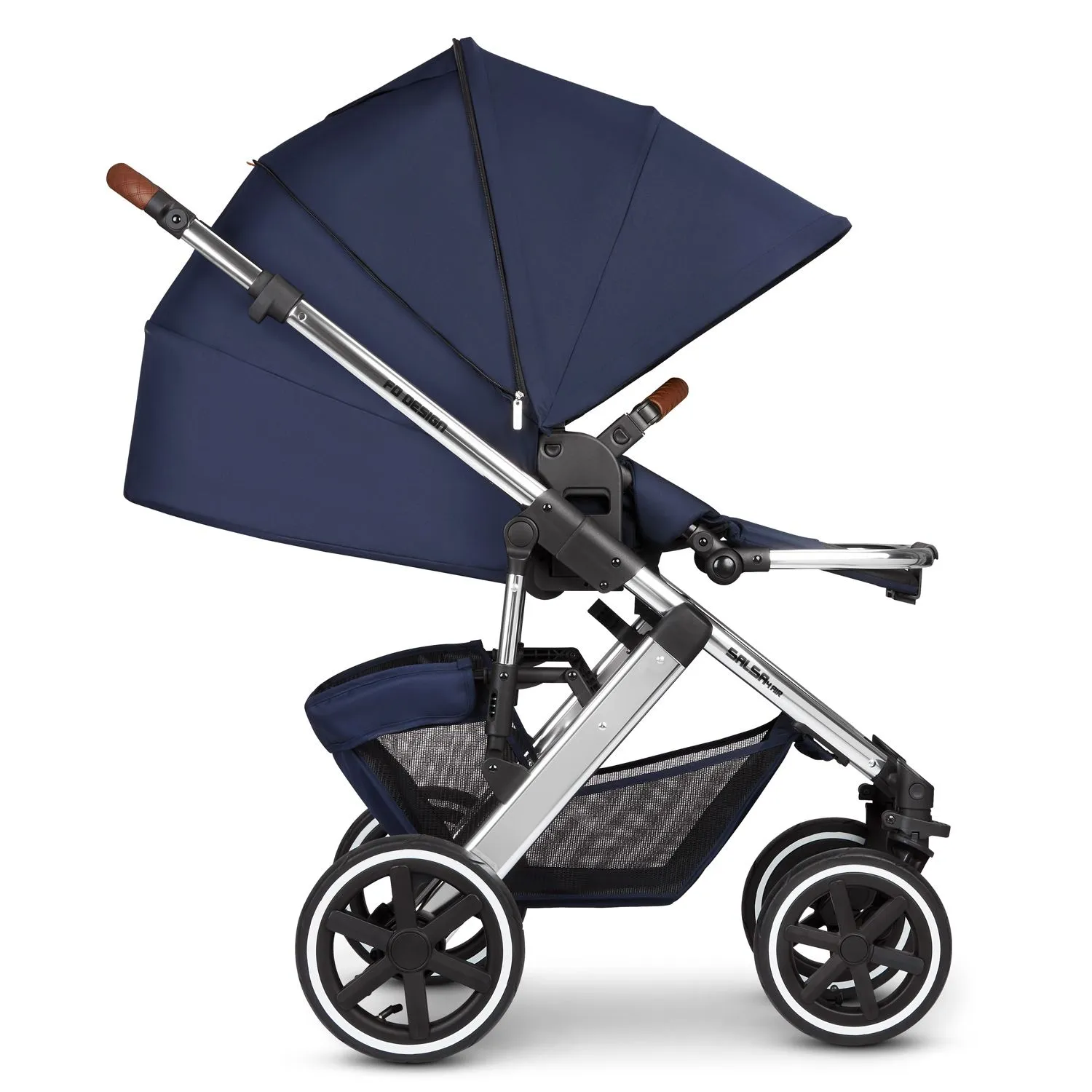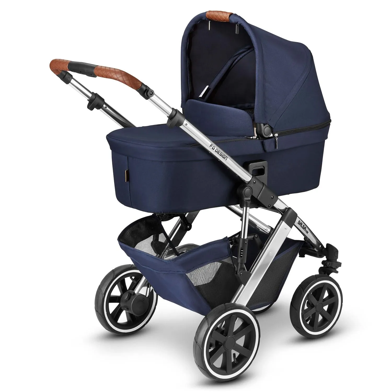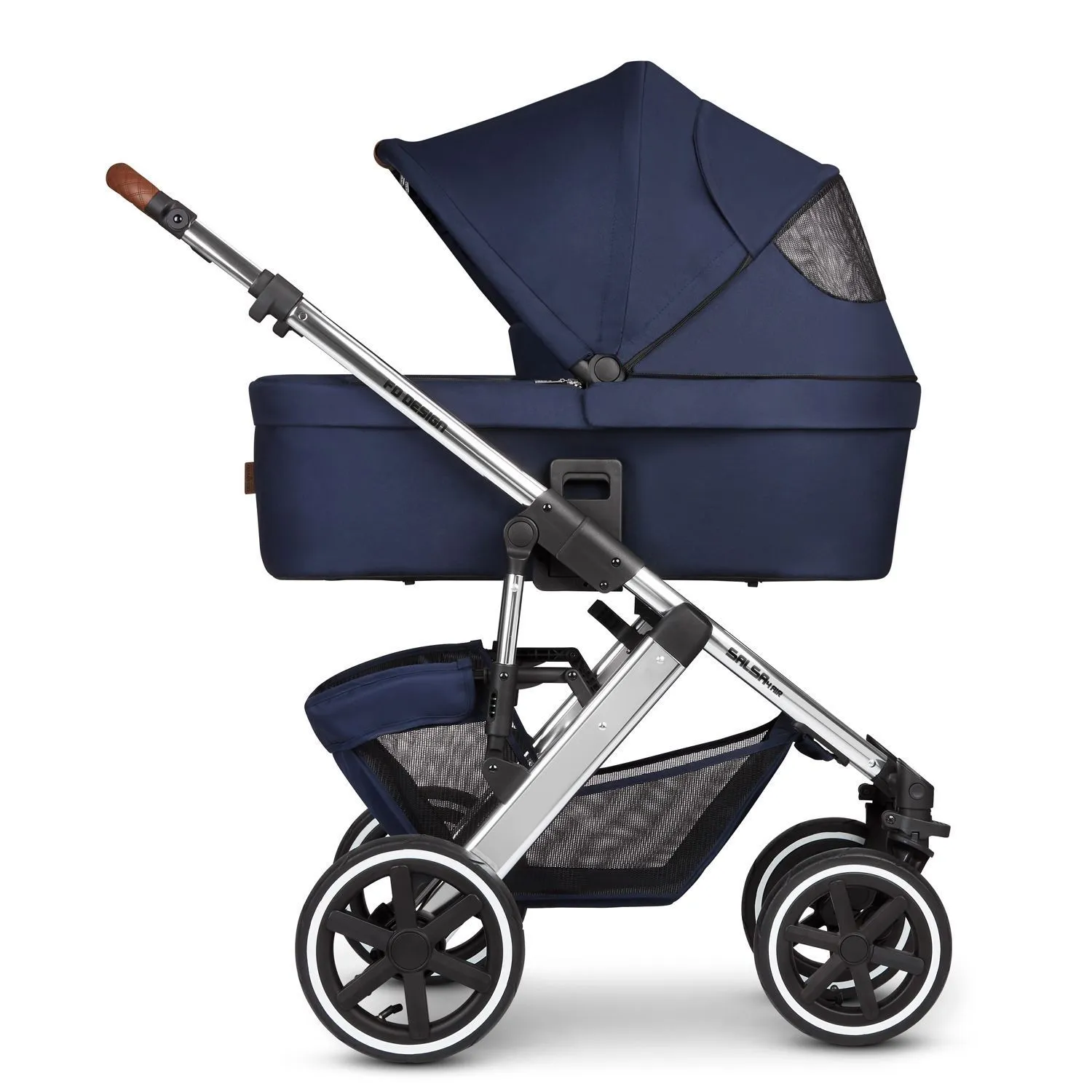 Для малыша с рождения на шасси устанавливается полноценная люлька для новорожденного (размеры по матрасику 76×34 см). В обновленной модели Salsa 4 AIR кнопки фиксатора имеют «эффект памяти»: люльку можно снять одной рукой, нажимая на кнопки поочередно. В дополнительном сегменте в капюшоне есть вентиляционно-смотровое окошко. В капор встроена ручка для переноски, которая для удобства родителей имеет накладку из практичной эко-кожи. Защиту от ветра и холода обеспечивает накидка на ножки с отворотом.