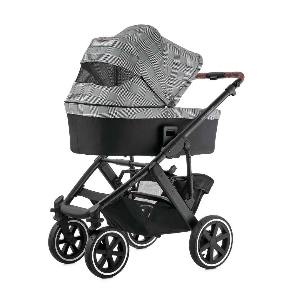 Серия Fashion Edition — это эффектные принты и оригинальные акценты, создающие неповторимый стиль вашей коляски. Коллекция Smaragd привлекает своим клетчатым принтом, который напоминает узор Burberry, в сочетании с алмазным швом из стеганой эко-кожи на ручке и бампере, шинами Whitewall и матовым шасси черного цвета.