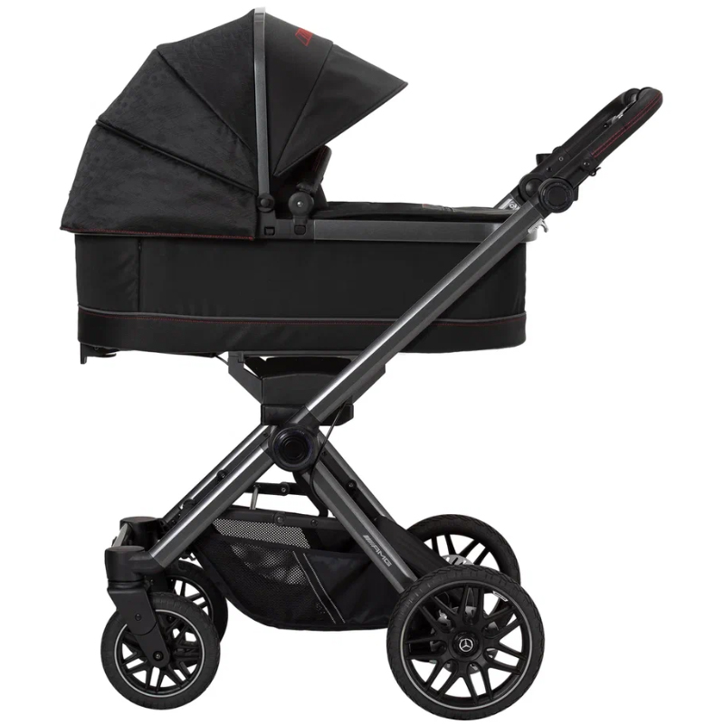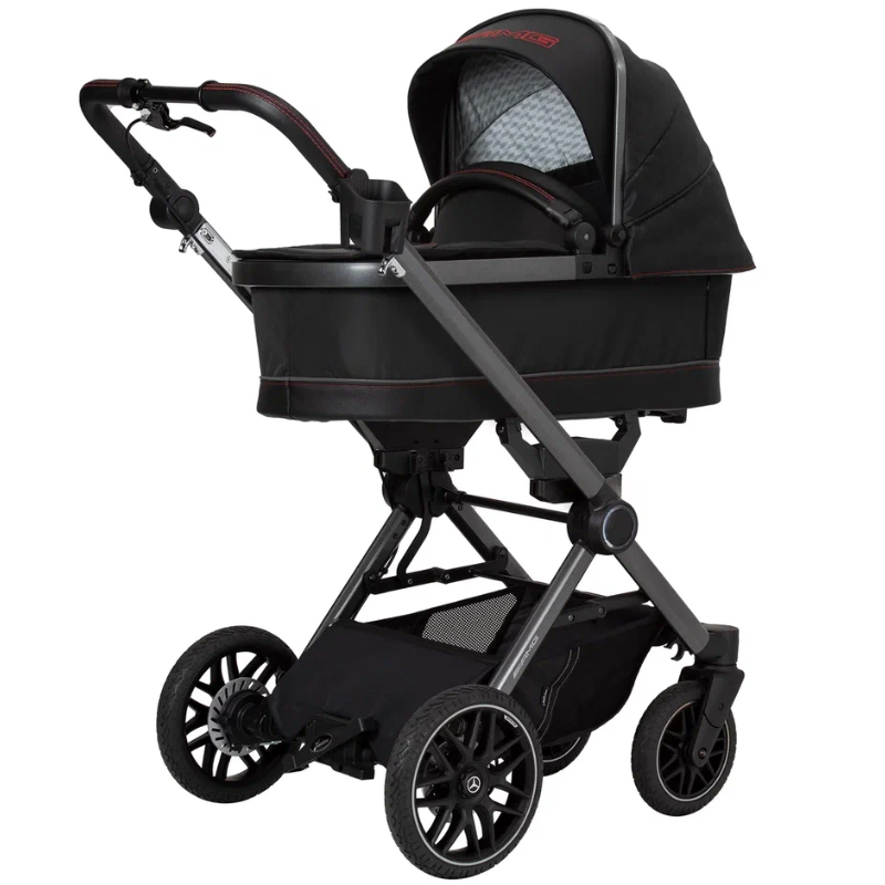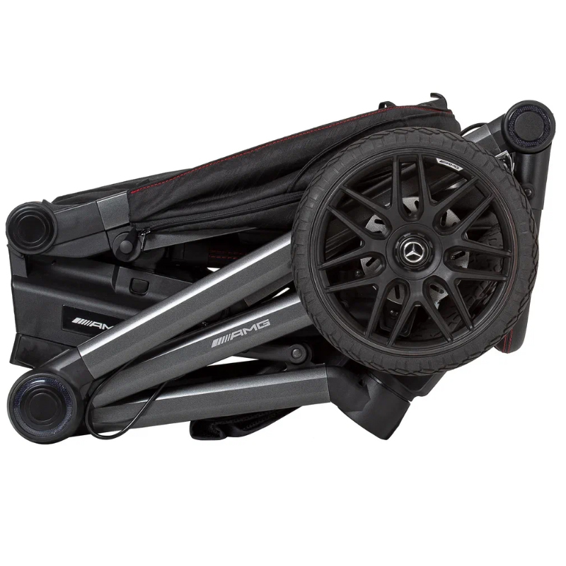 - 5-спицевые колеса коляски выполнены в дизайне AMG, как у настоящих спорткаров