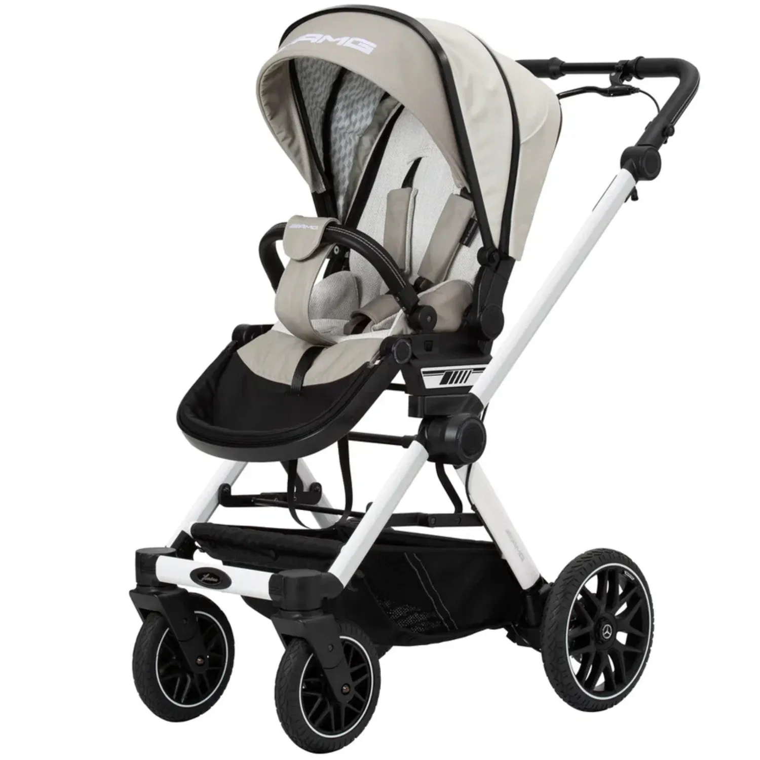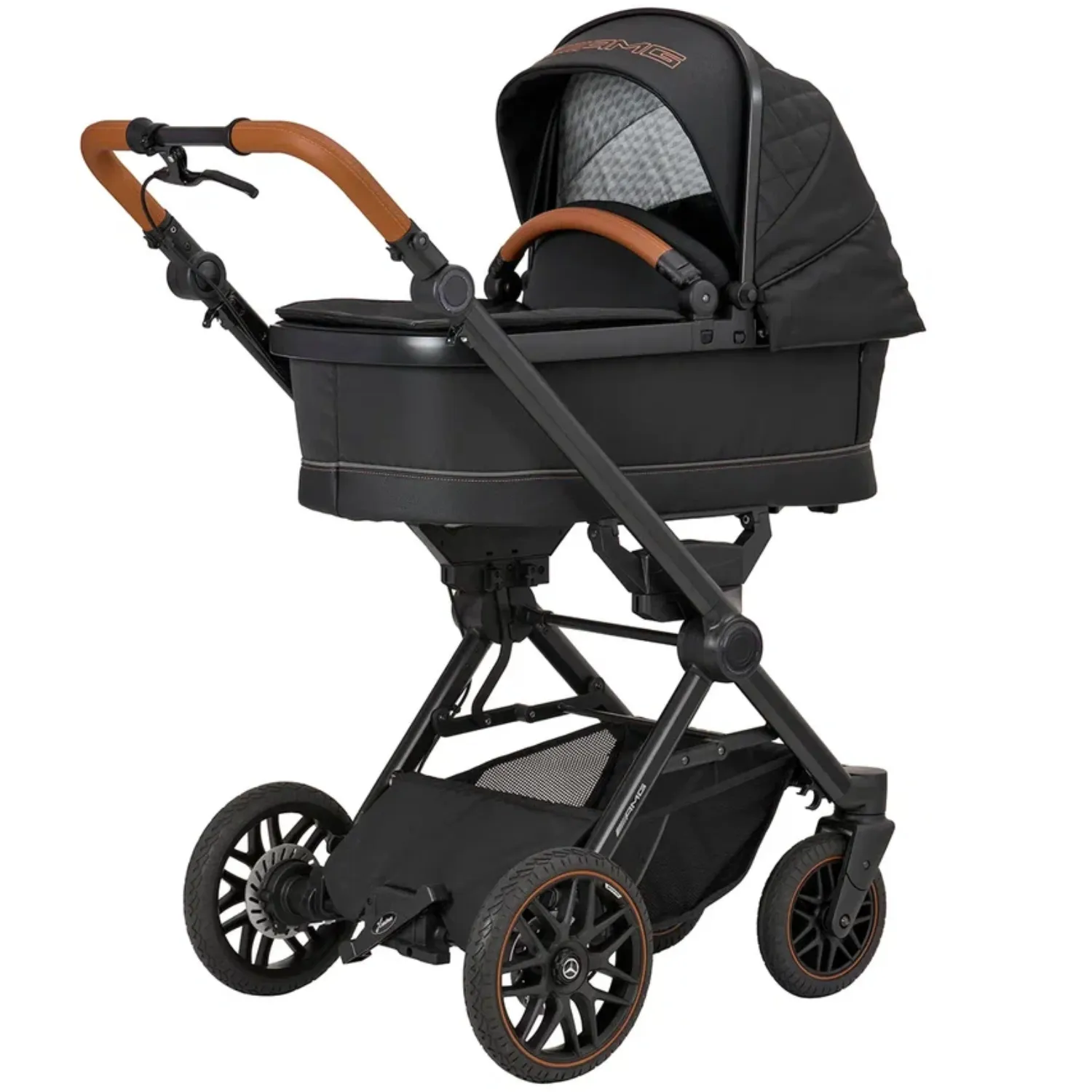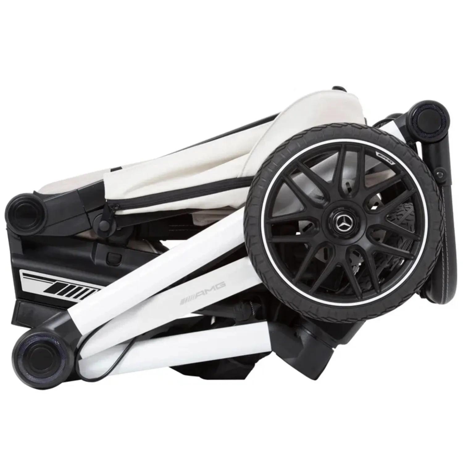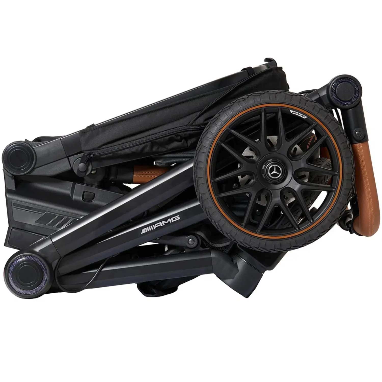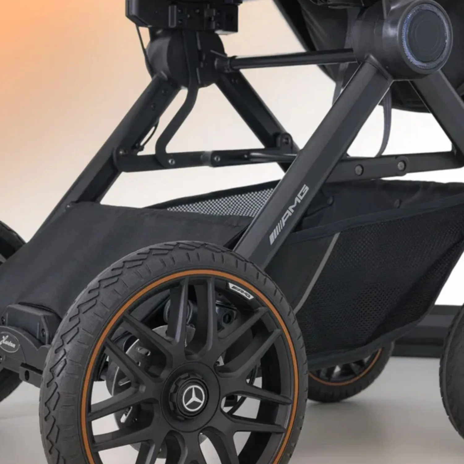 - 5-спицевые колеса коляски выполнены в дизайне AMG, как у настоящих спорткаров