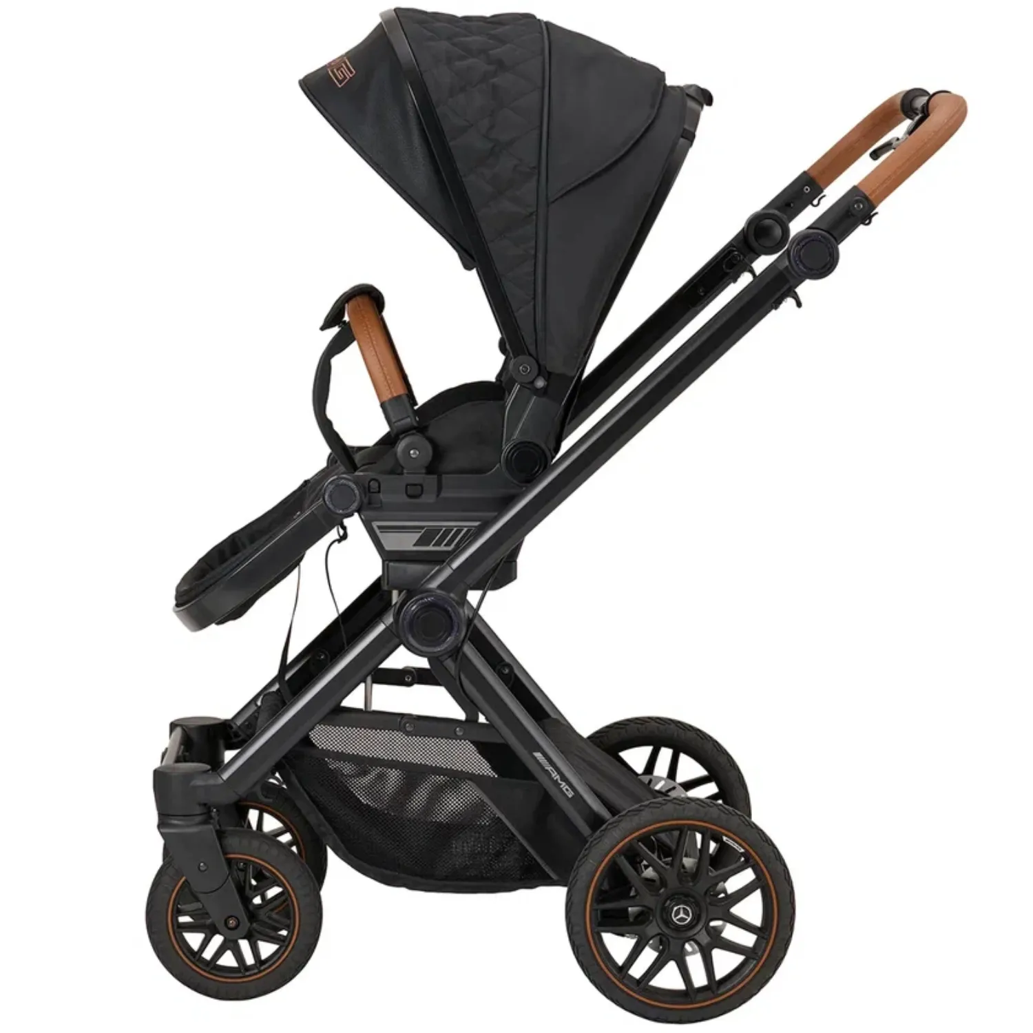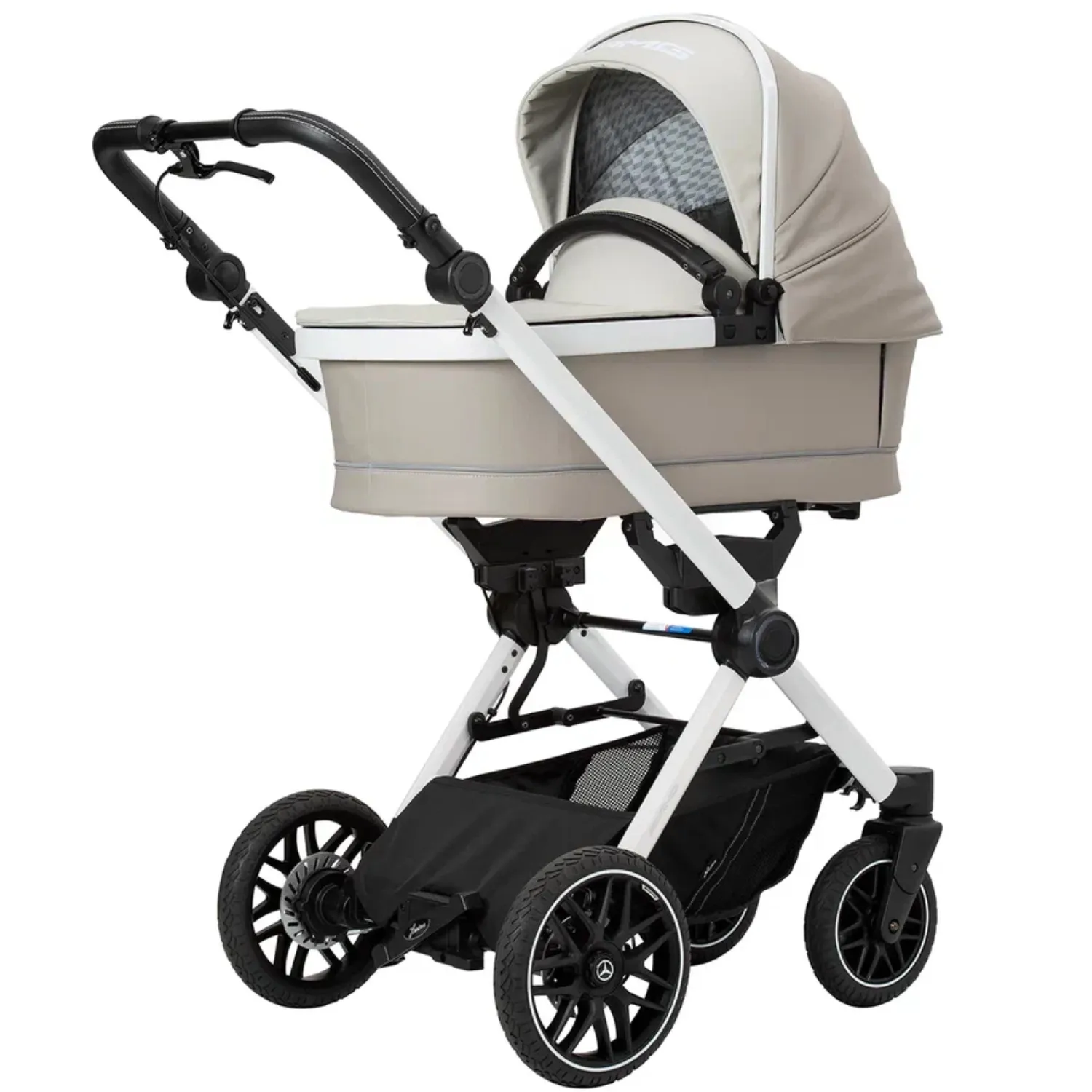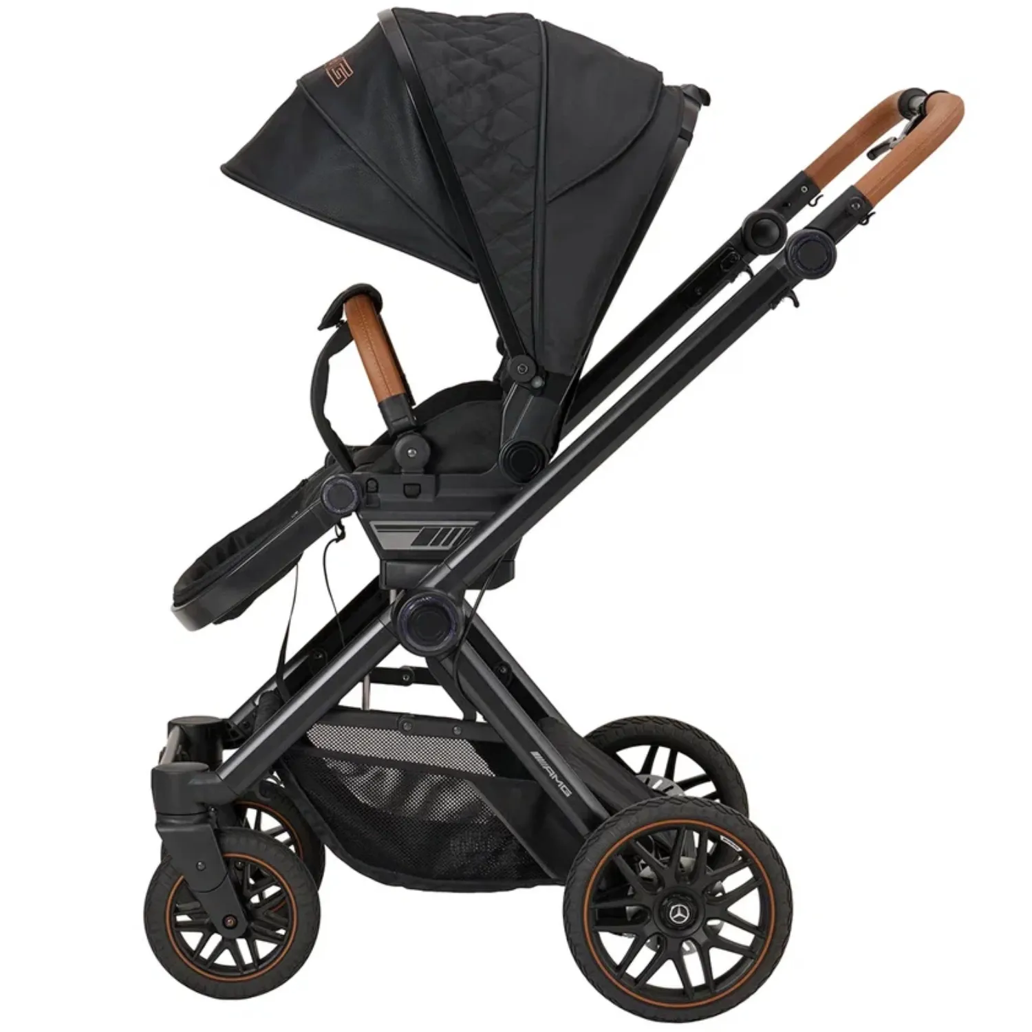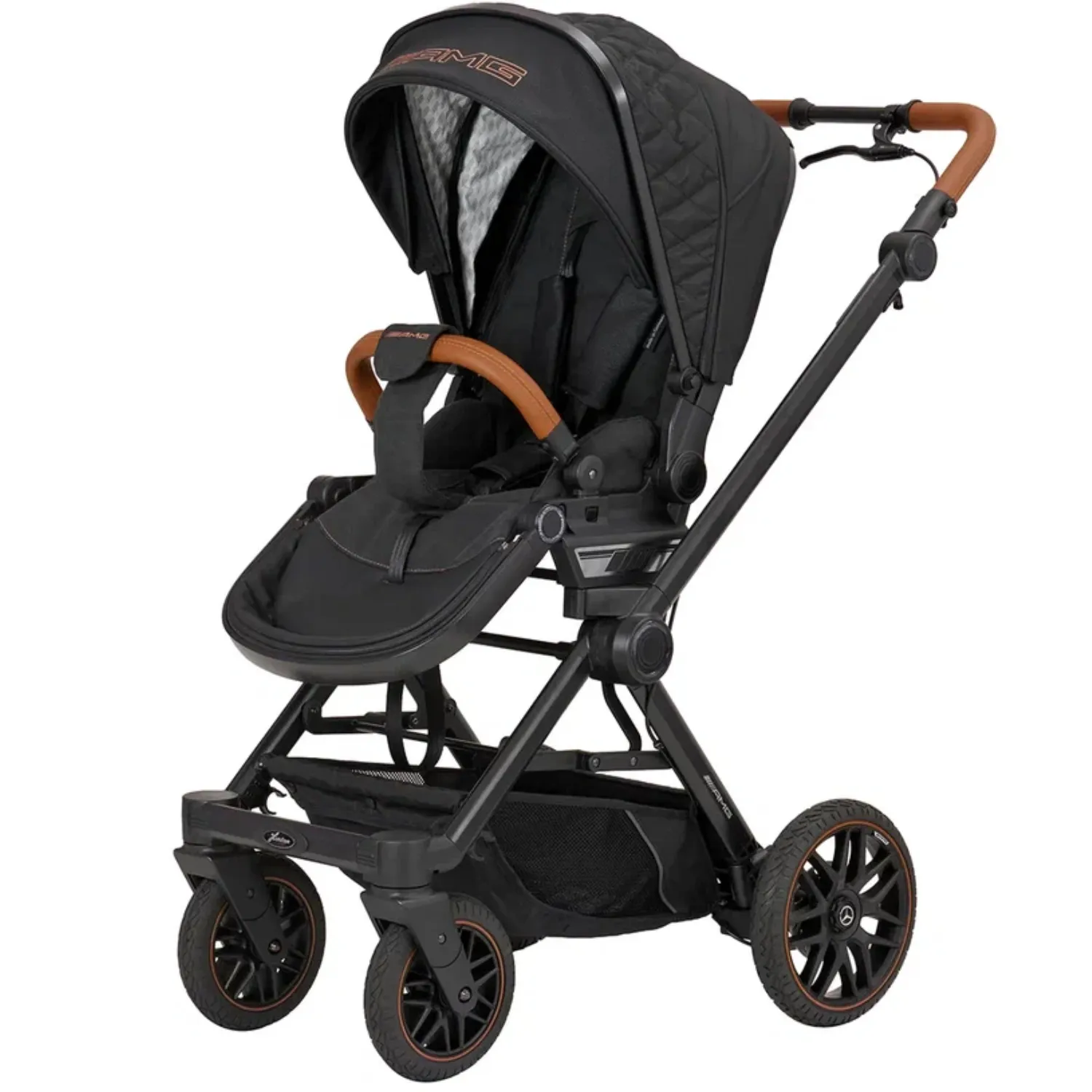 - 5-спицевые колеса коляски выполнены в дизайне AMG, как у настоящих спорткаров