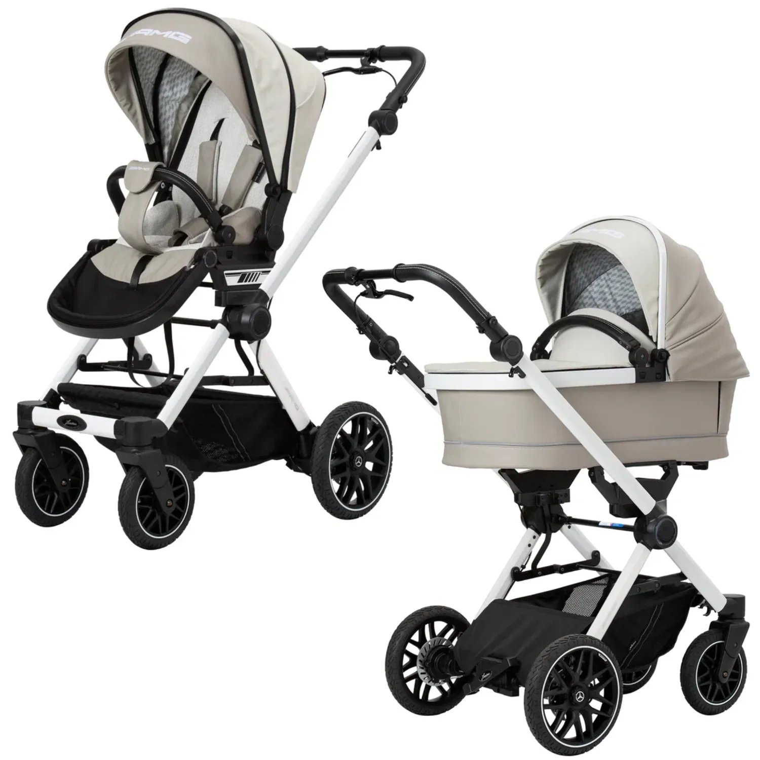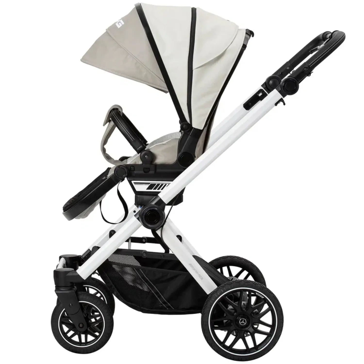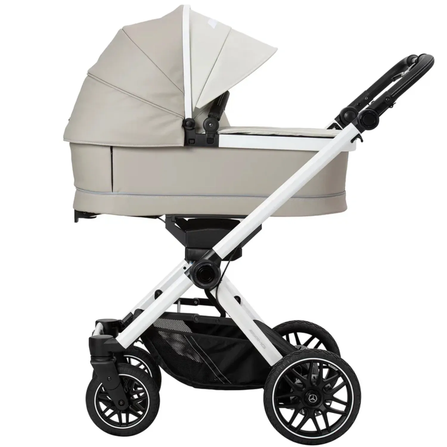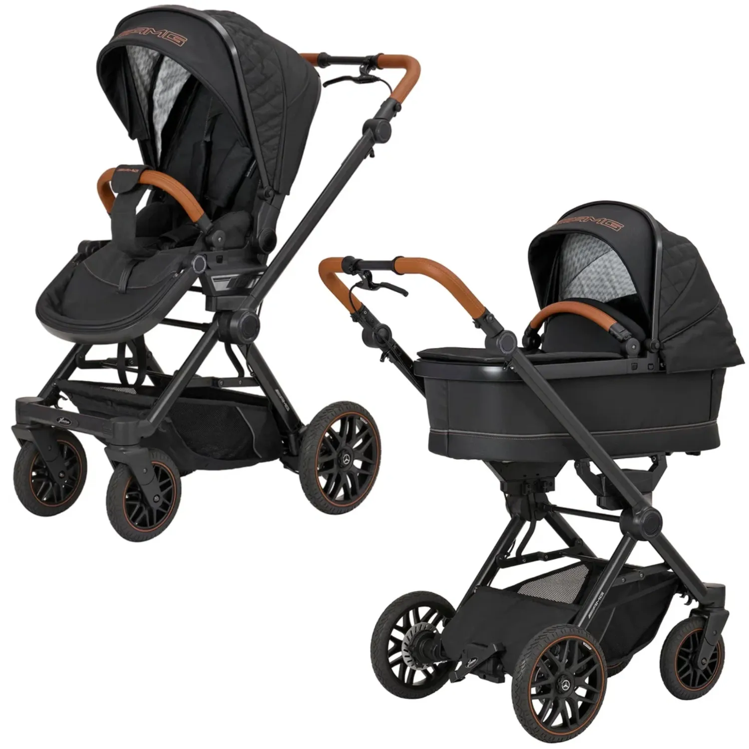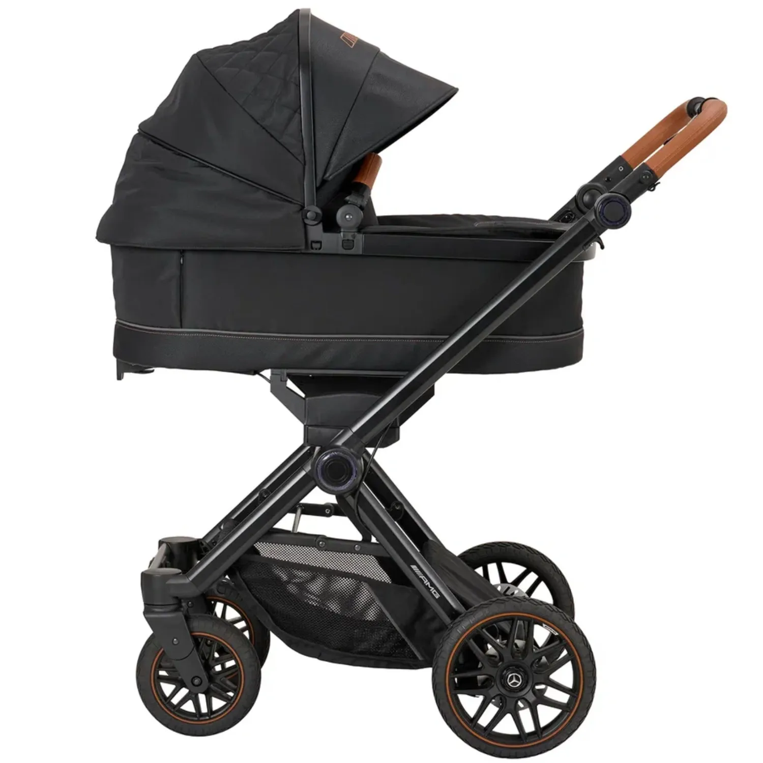 - 5-спицевые колеса коляски выполнены в дизайне AMG, как у настоящих спорткаров