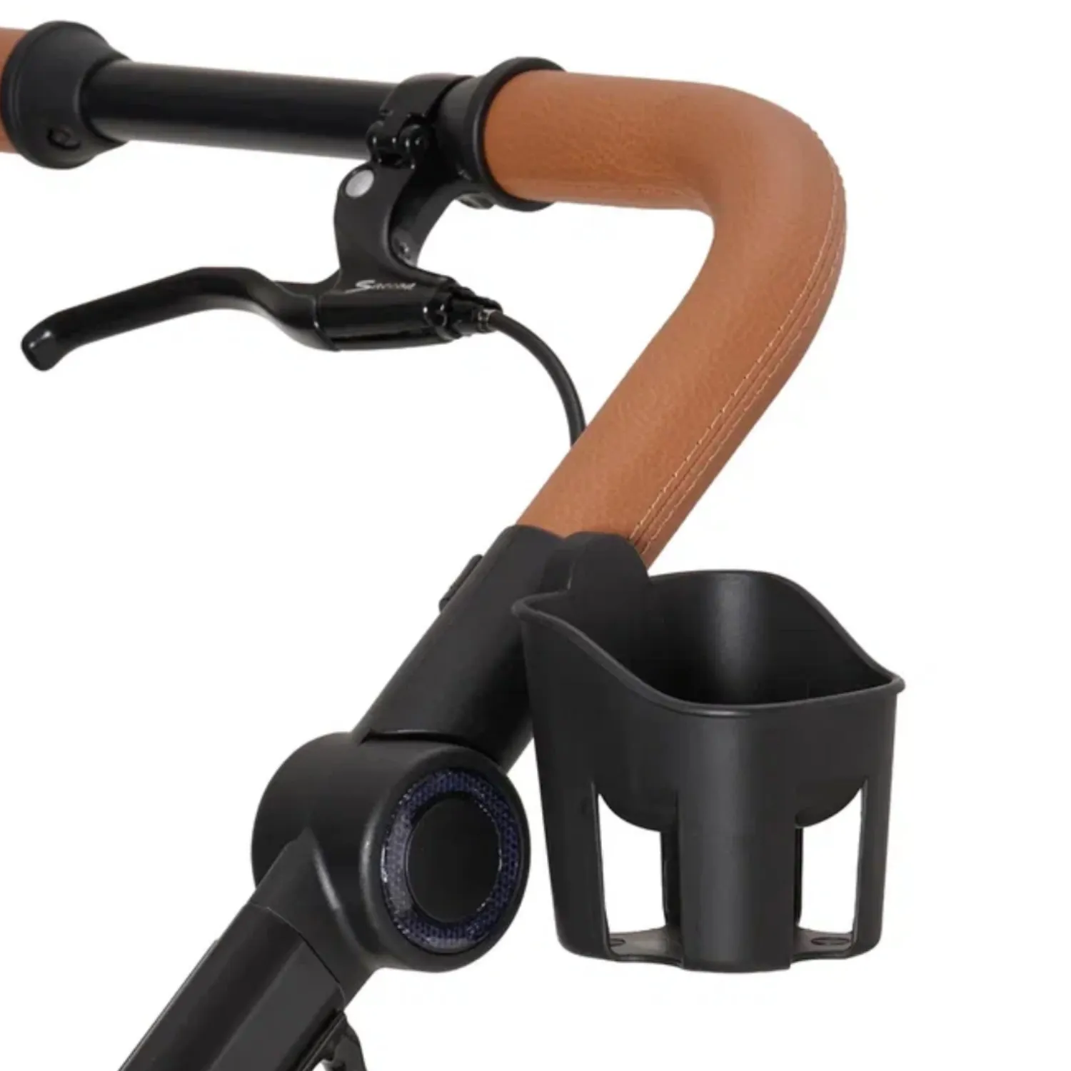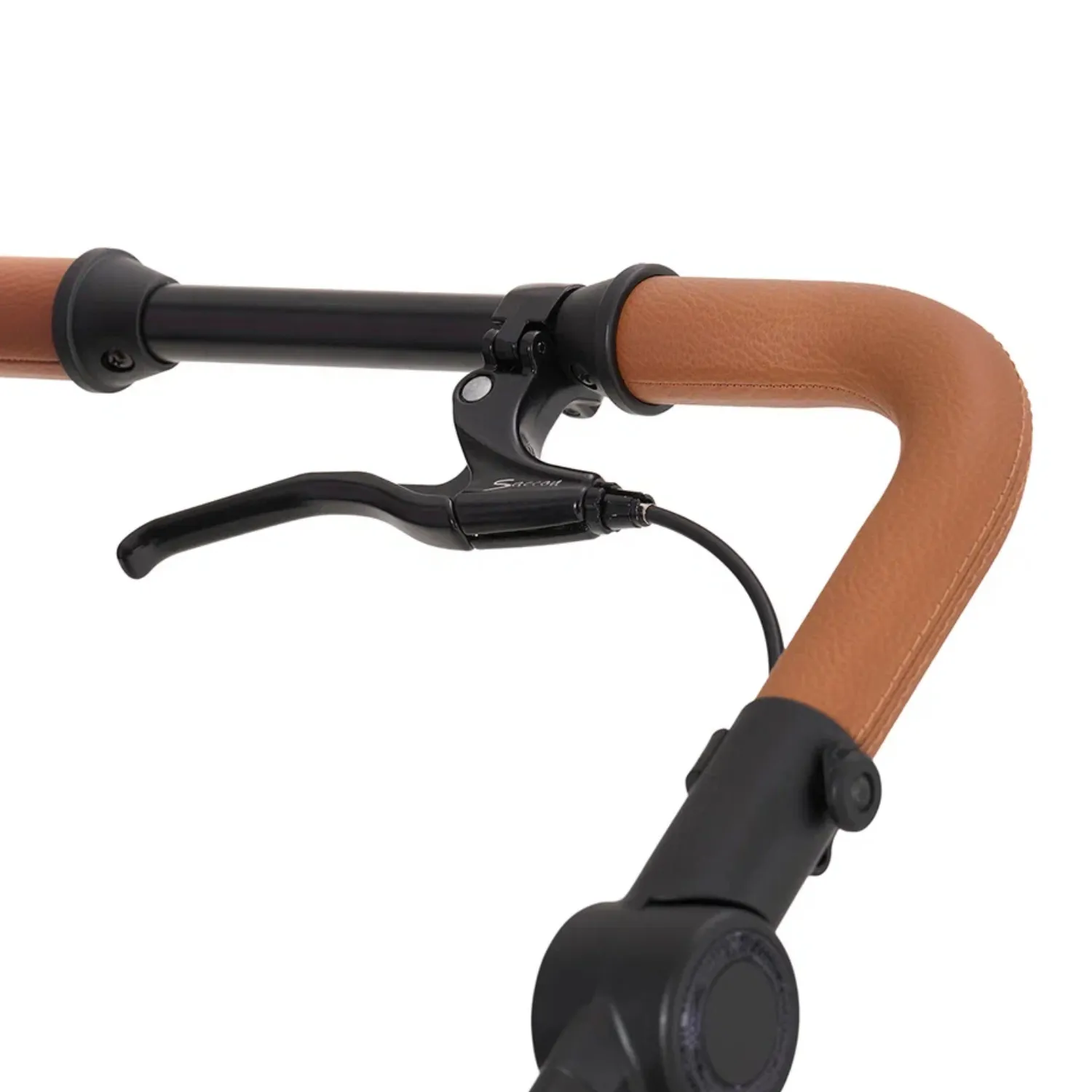 Регулируемая ручка коляски будет удобна родителям любого роста. Она выполнена из очень мягкой и тактильно приятной эко-кожи с эффектной строчкой. На ручке расположен ручной тормоз, который особенно актуален при спуске с горки или пандуса.