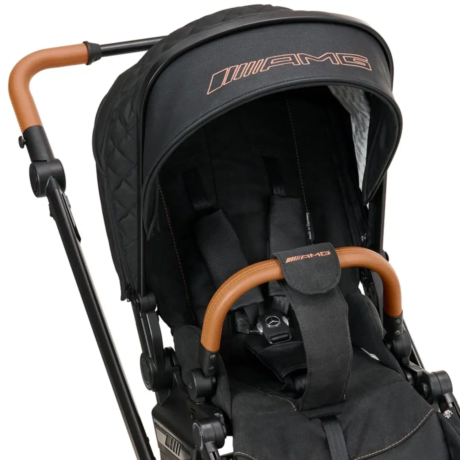 Каждая деталь коляски делается вручную на заводе, расположенном на севере Баварии. Бережно собранная немецкими мастерами, коляска сочетает в себе роскошный дизайн от Mercedes-AMG и оригинальные материалы Dinamica, как в автомобилях AMG.