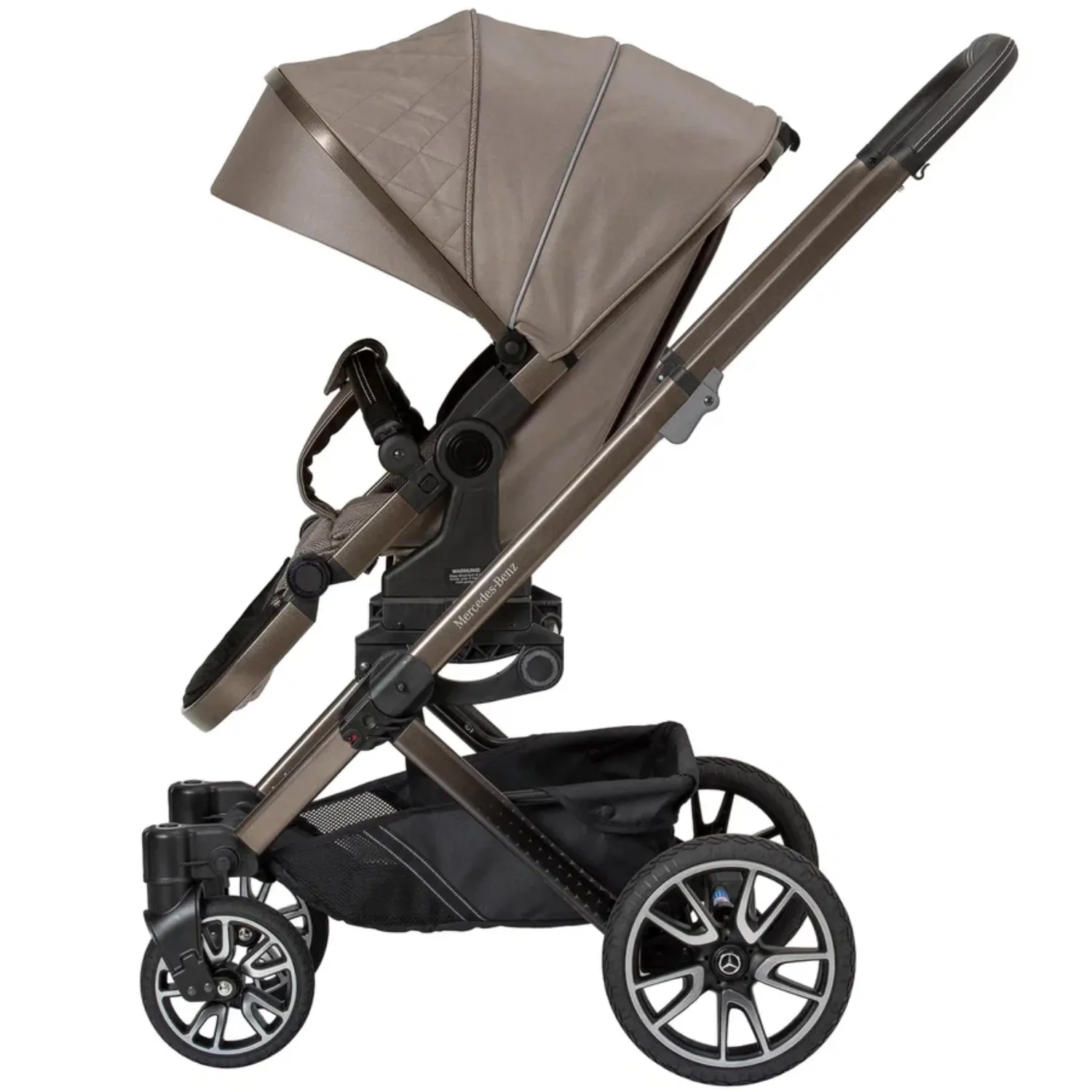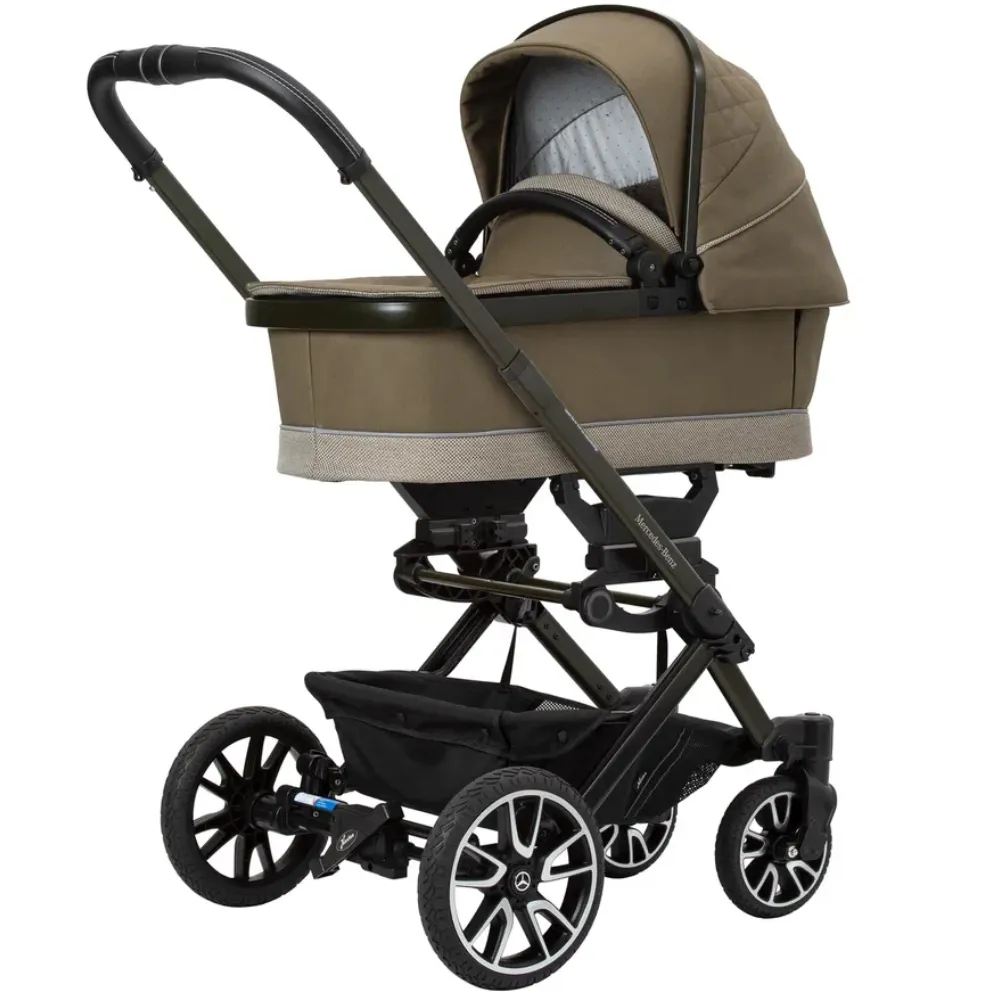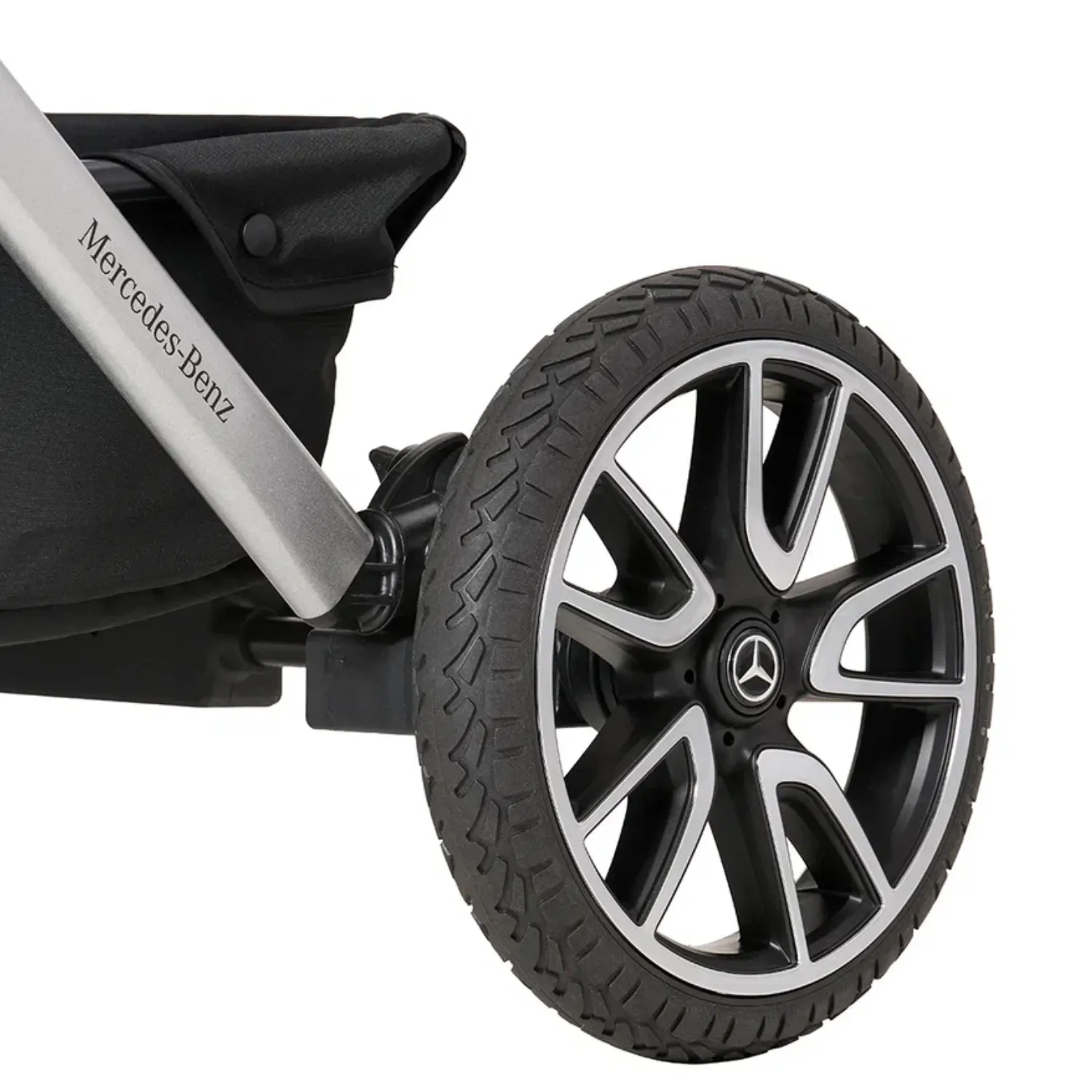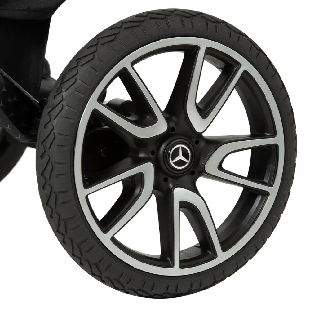 Задняя подвеска имеет два режима: городской и спорт. Дизайн колес имеет пятиспицевые диски AMG, а непрокалываемые покрышки с пенным наполнителем гарантируют надежность. Выбирайте подходящий и наслаждайтесь комфортными прогулками с идеальным управлением роскошной коляской.