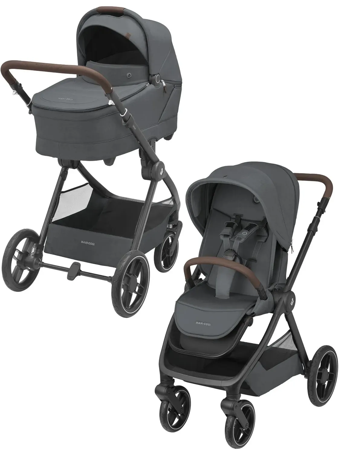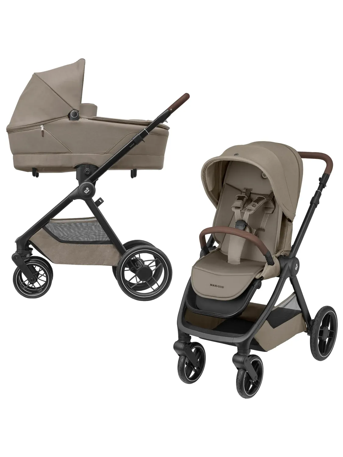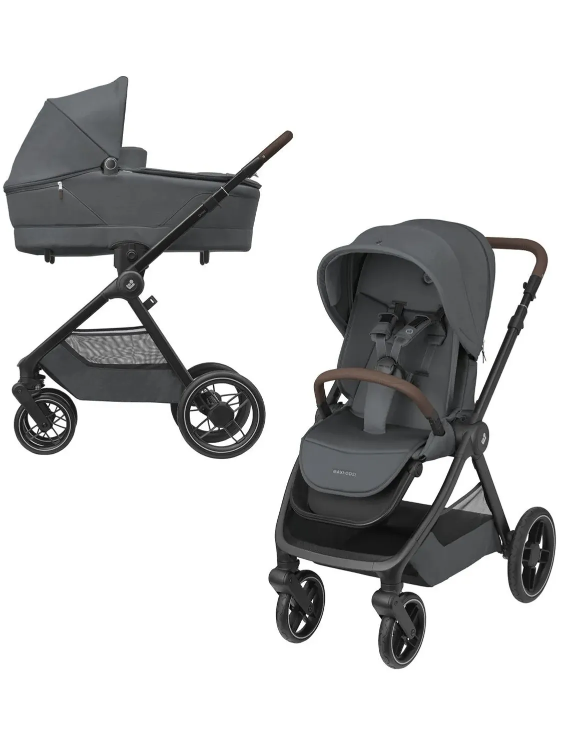 Maxi-Cosi Oxford Plus 2 в 1 включает в себя просторную и компактную прогулочную коляску Oxford Plus, а также роскошную удобную люльку для новорожденных Sense.