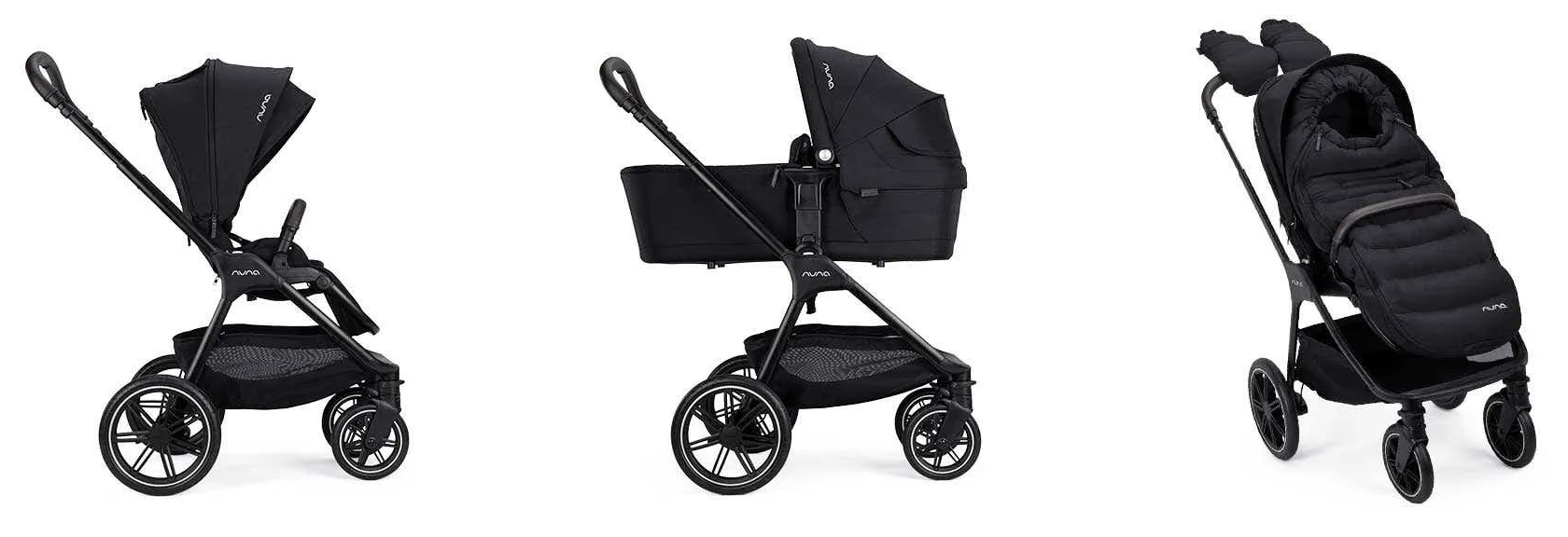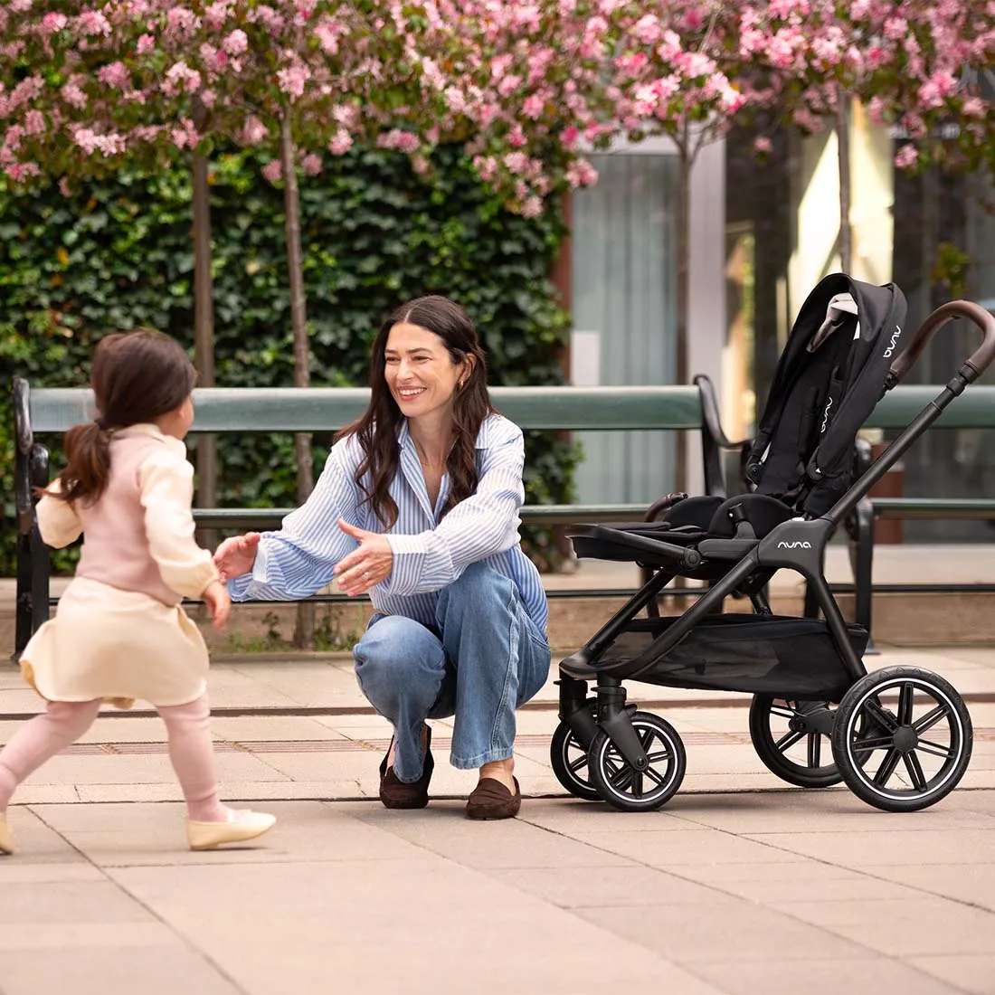 - 4 удобных режима езды — сиденье поворачивается из положения «лицом к родителю» в положение «лицом к миру», трансформируется в систему для путешествий с люлькой TRIV lx или любым детским автокреслом Nuna (приобретается отдельно);