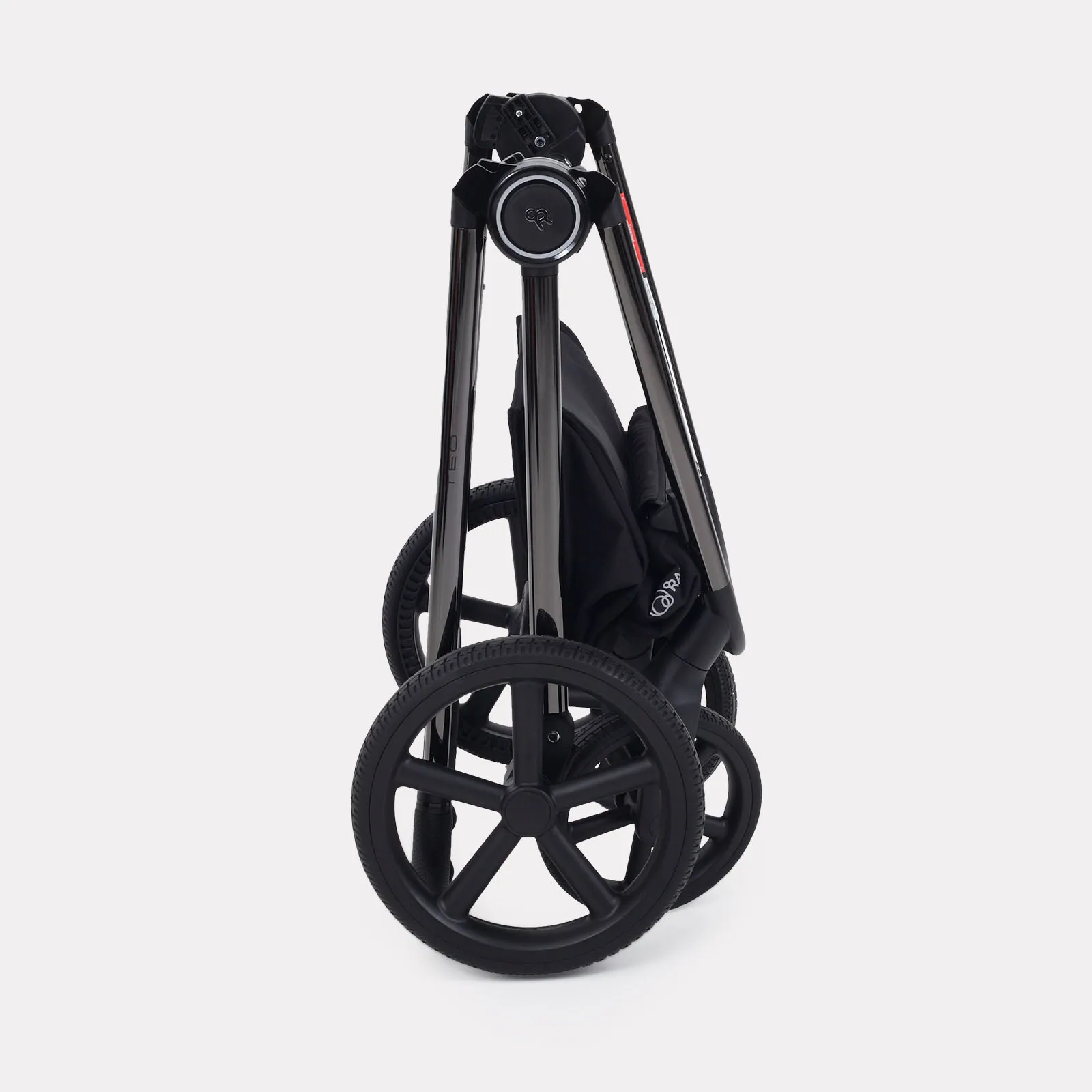 - коляска дополнена функцией автоскладывания — просто нажмите кнопку и слегка подтолкните подножку в обратную сторону. Модель складывается автоматически сразу вместе с блоком, независимо от его положения (по ходу/против хода).