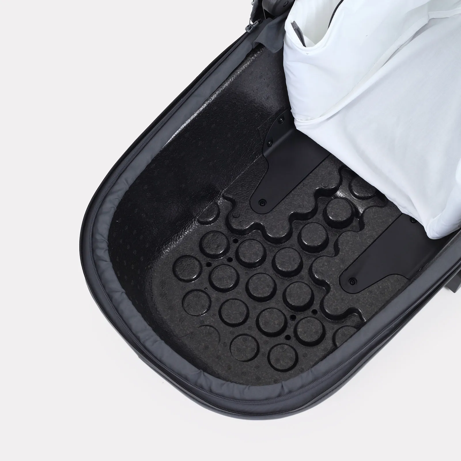 - абсолютная инновация модели — литая термолюлька. Особый материал, из которого выполнен блок, идеально поддерживает микроклимат внутри: на улице жарко — в люльке прохладно, на улице холодно — в люльке тепло. В то же время высокотехнологичный материал люльки характеризуется легким весом и ударопрочностью.