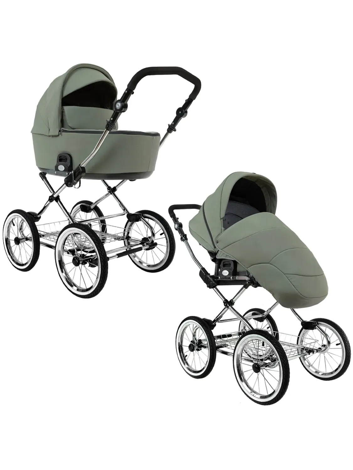 Главное достоинство такой рамы, что при движении по труднопроходимой местности колеса не вибрируют, коляска движется очень легко, а идеальная амортизация, основанная на кулисах, закрепленных в четырех точках, обеспечивает хороший сон для ребенка.