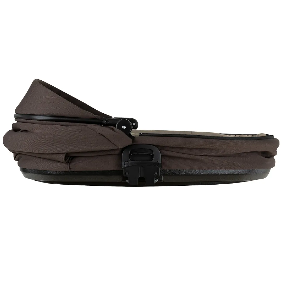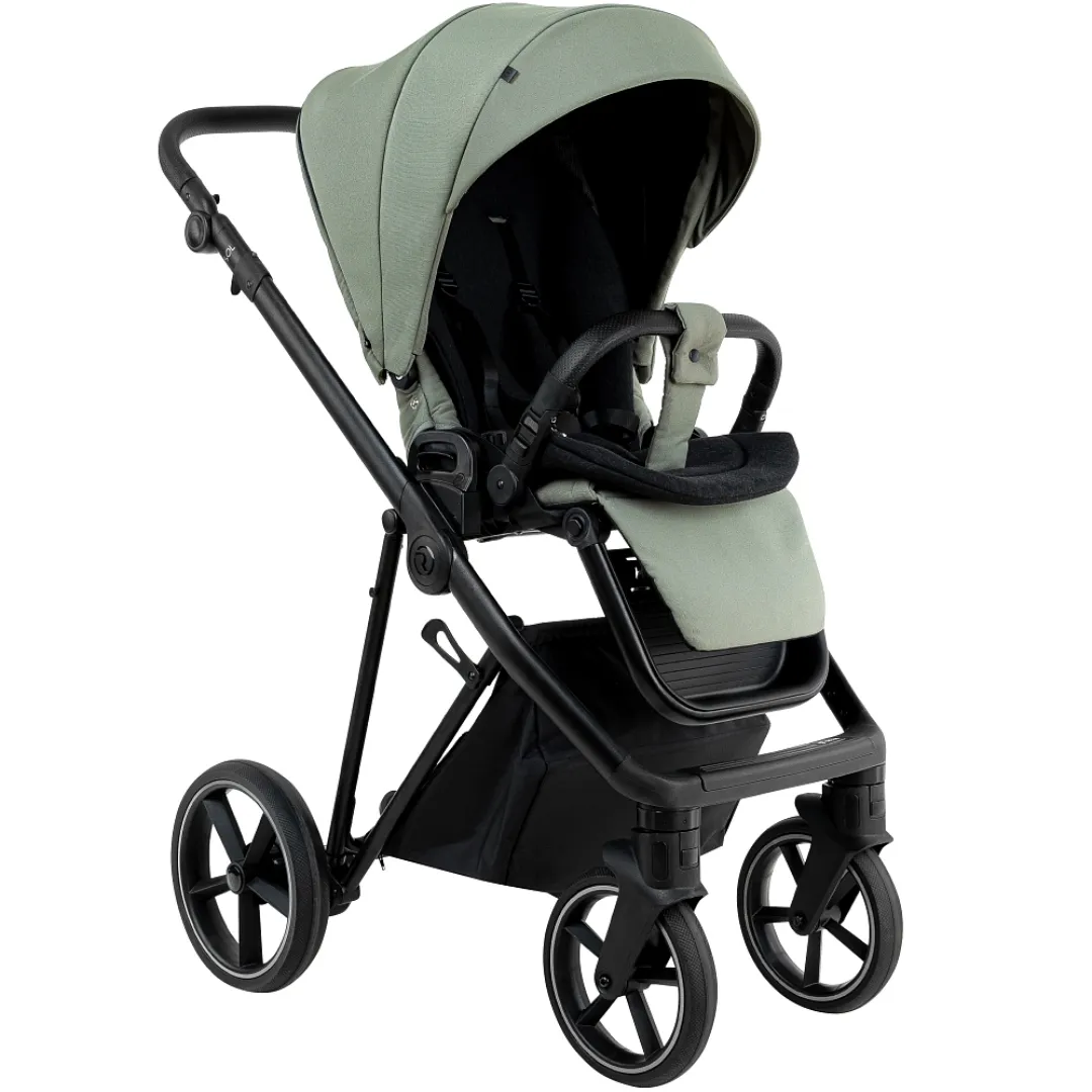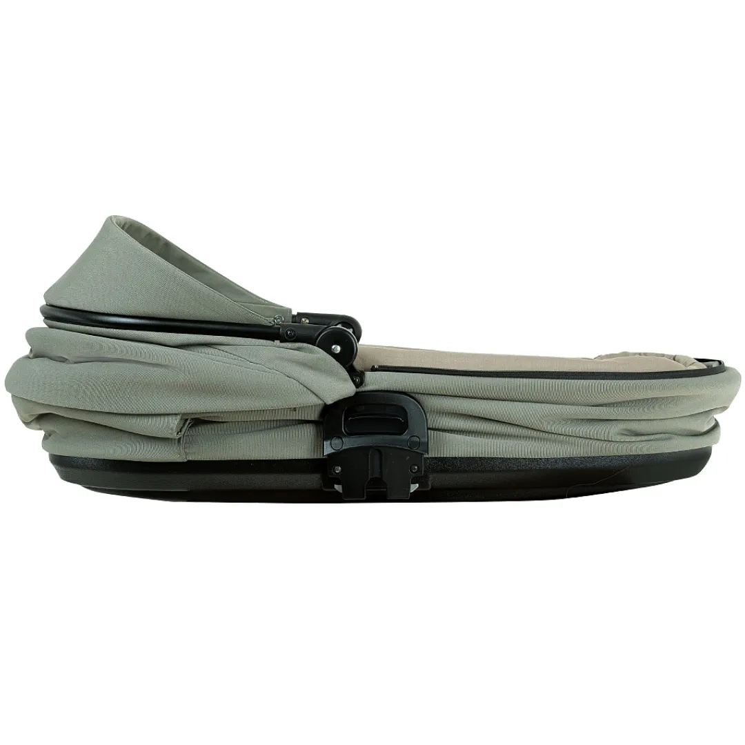 Большая полноразмерная, бескаркасная люлька, предусмотрена глубокая система вентиляции нового поколения «double Air». Отделка внутренней части люльки выполнена из хлопковой натуральной ткани, имеется дополнительный бортик для использования коляски в зимний период. Большой глубокий капор и регулировка капюшона.