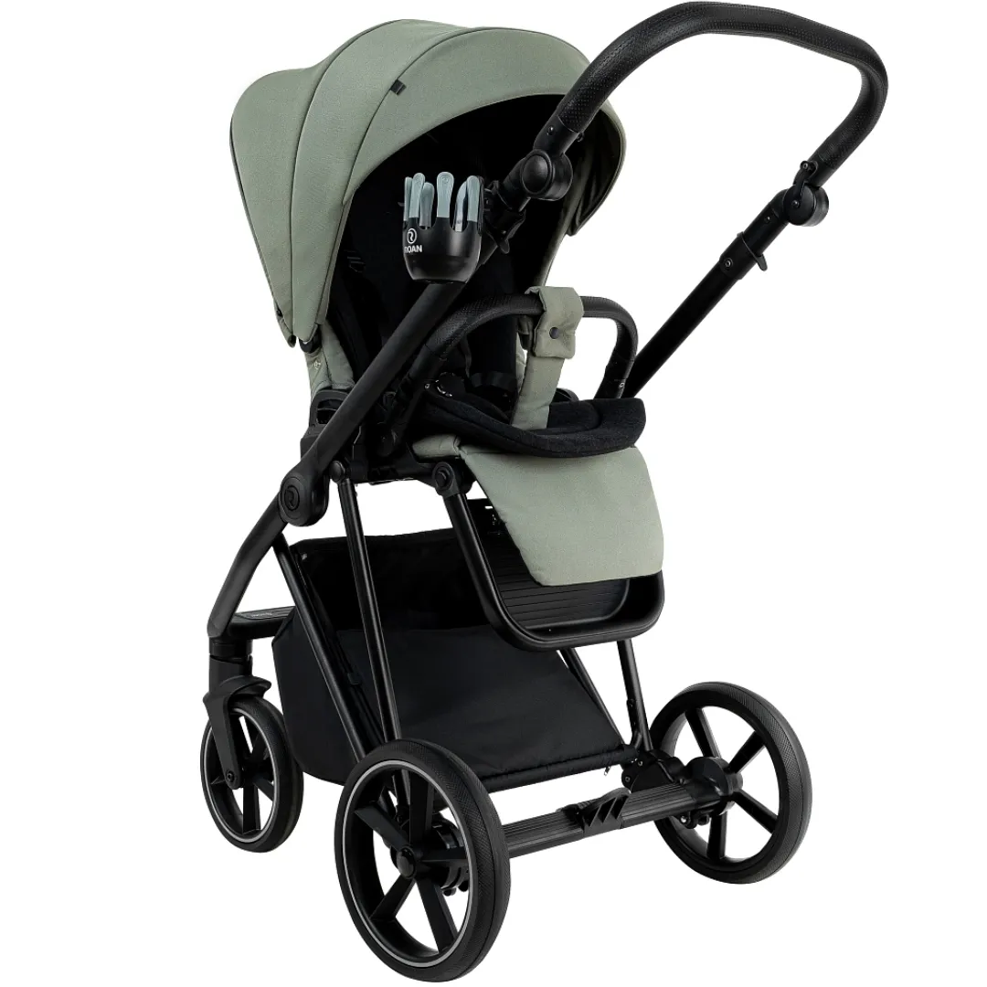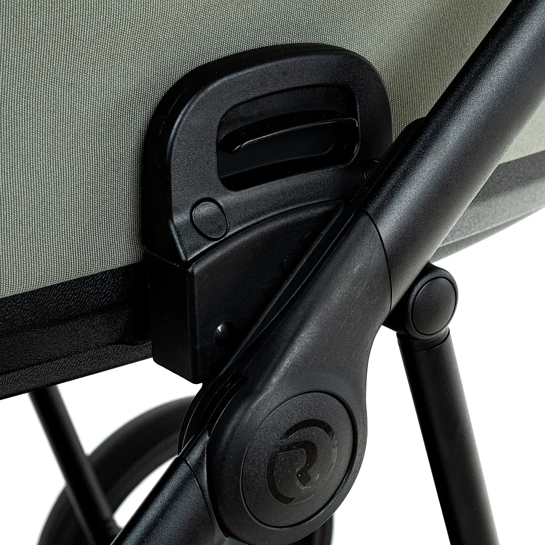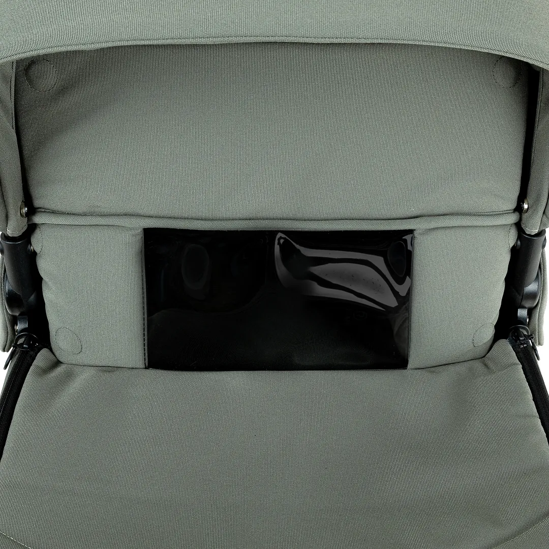 Большая полноразмерная, бескаркасная люлька, предусмотрена глубокая система вентиляции нового поколения «double Air». Отделка внутренней части люльки выполнена из хлопковой натуральной ткани, имеется дополнительный бортик для использования коляски в зимний период. Большой глубокий капор и регулировка капюшона.