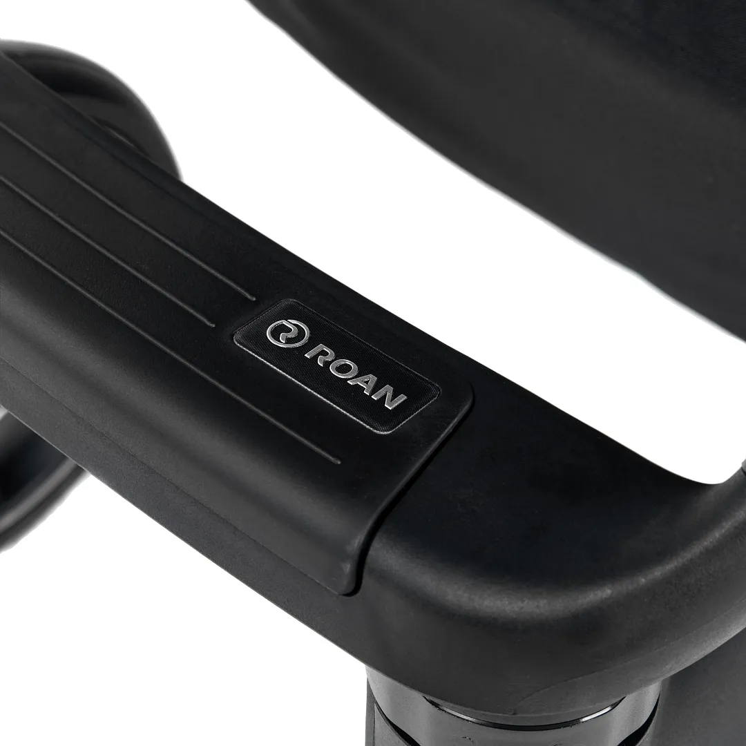 В конструкции рамы производитель Roan применяет собственные разработки деталей (узлов), например, тормозная система, механизм крепления люльки, механизм складывания и др.