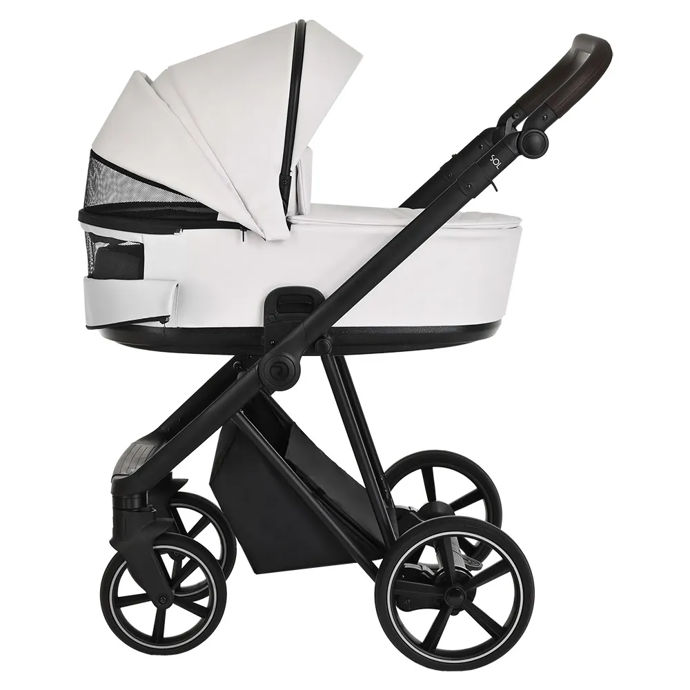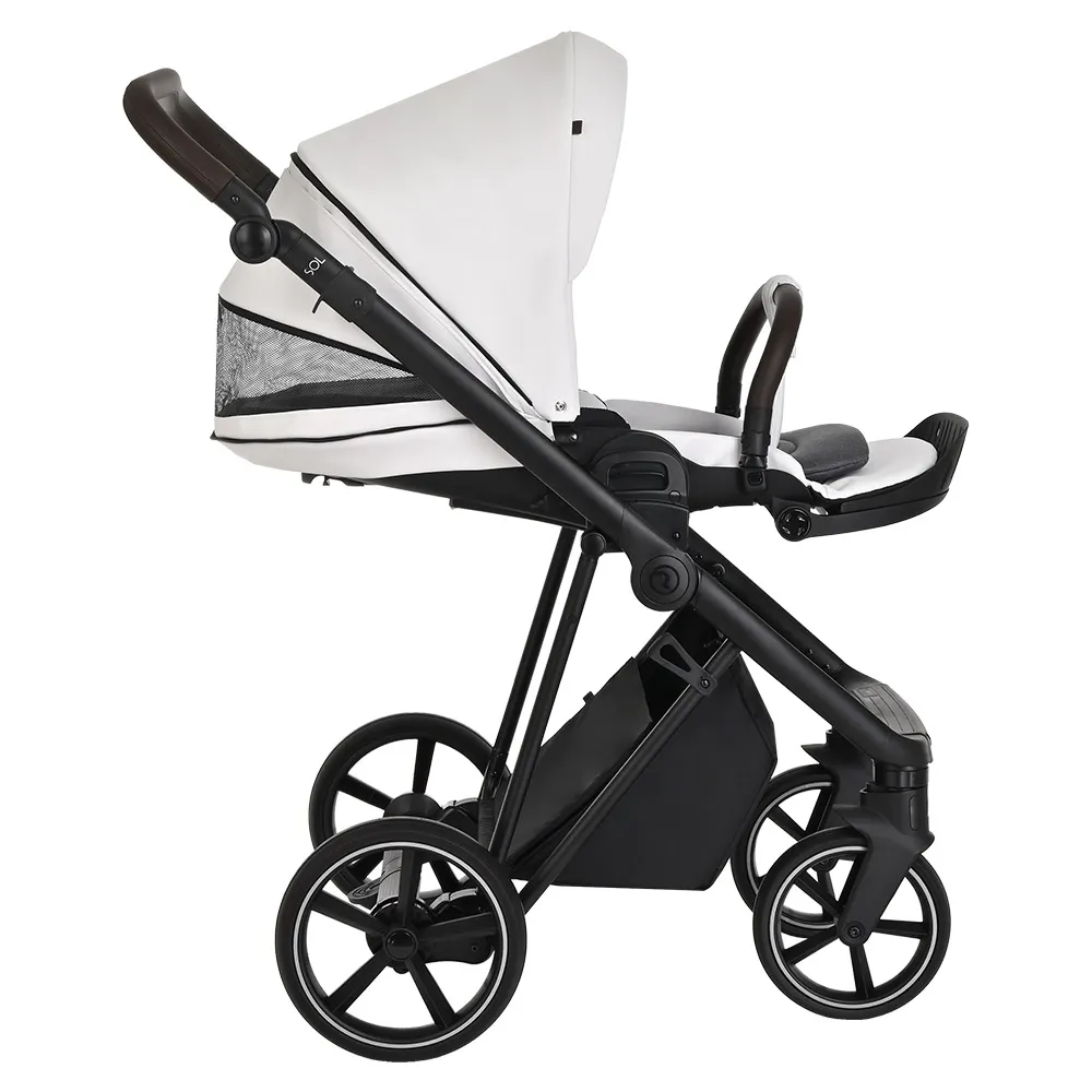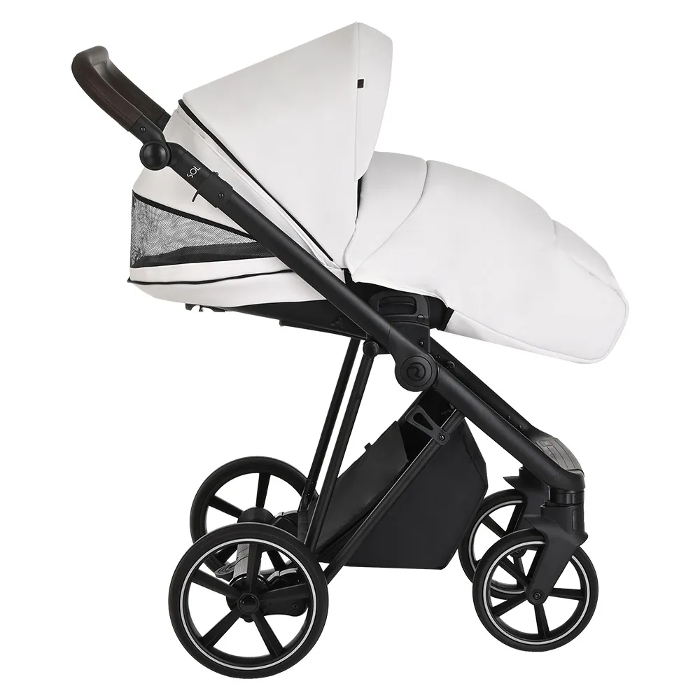 Для новорожденных малышей в коляске Roan Sol предусмотрена большая бескаркасная люлька, которая оснащена глубокой системой вентиляции нового поколения «double air». Отделка внутренней части люльки выполнена из хлопковой натуральной ткани, имеется дополнительный бортик для использования коляски в зимний период. Прогулки в любую погоду будут комфортными с большим глубоким капором с регулировкой капюшона.