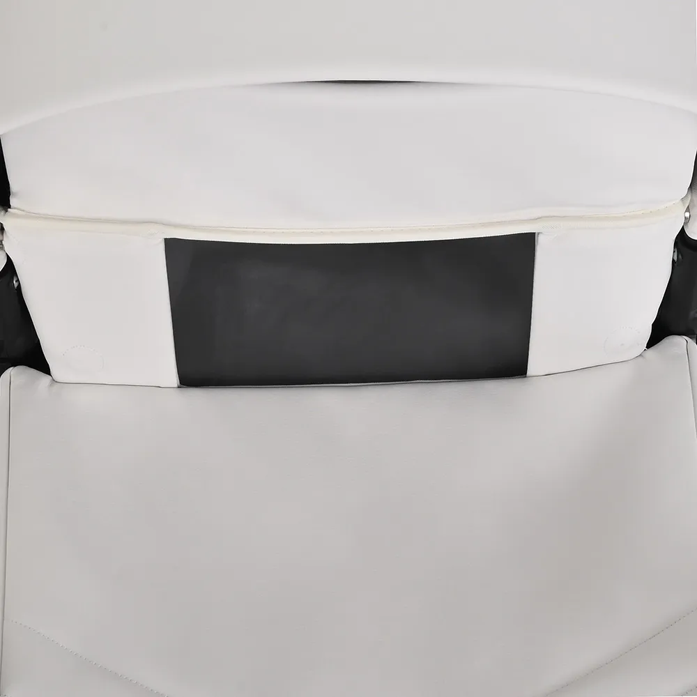 Чехол в люльке имеет отворот со смотровым окошком. Окошко выполнено из морозостойкого силикона. Чехол люльки крепится на магнитах к основанию люльки — это новая уникальная система от Roan. Такой способ крепления позволяет моментально закрепить или снять чехол с люльки.