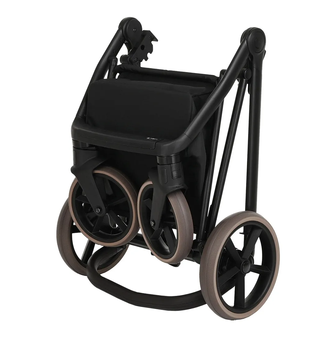 На основании рамы крепится компактная стильная корзина. Несмотря на свой компактный вид, корзина довольно вместительная и имеет возможность увеличения. В комплект также входят сумка для мамы, матрасик для пеленания, солнцезащитный тент, москитная сетка и дождевик.