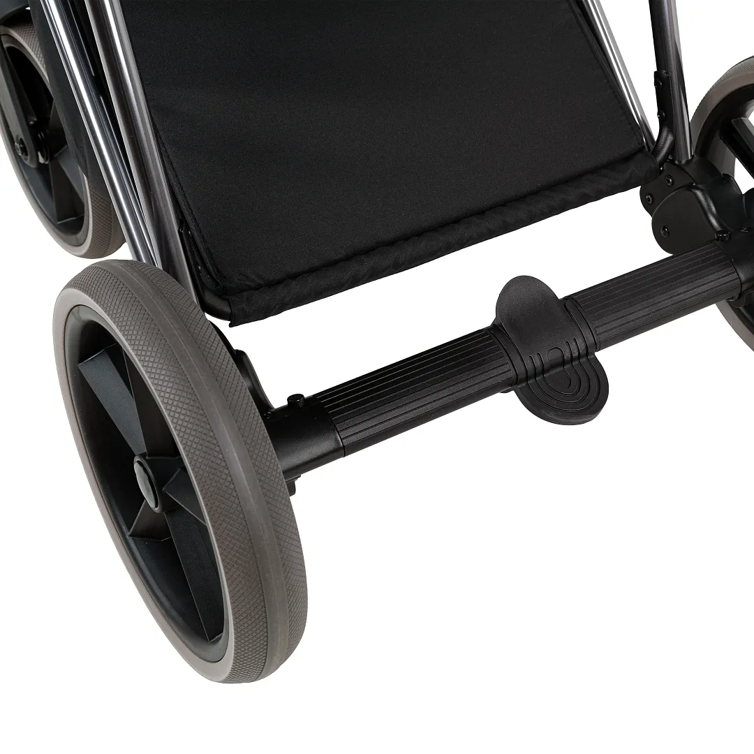 Конструкция рамы имеет амортизатор, специально разработанный для данной модели коляски, который компенсирует неровности дорожного покрытия и делает ход коляски плавным.