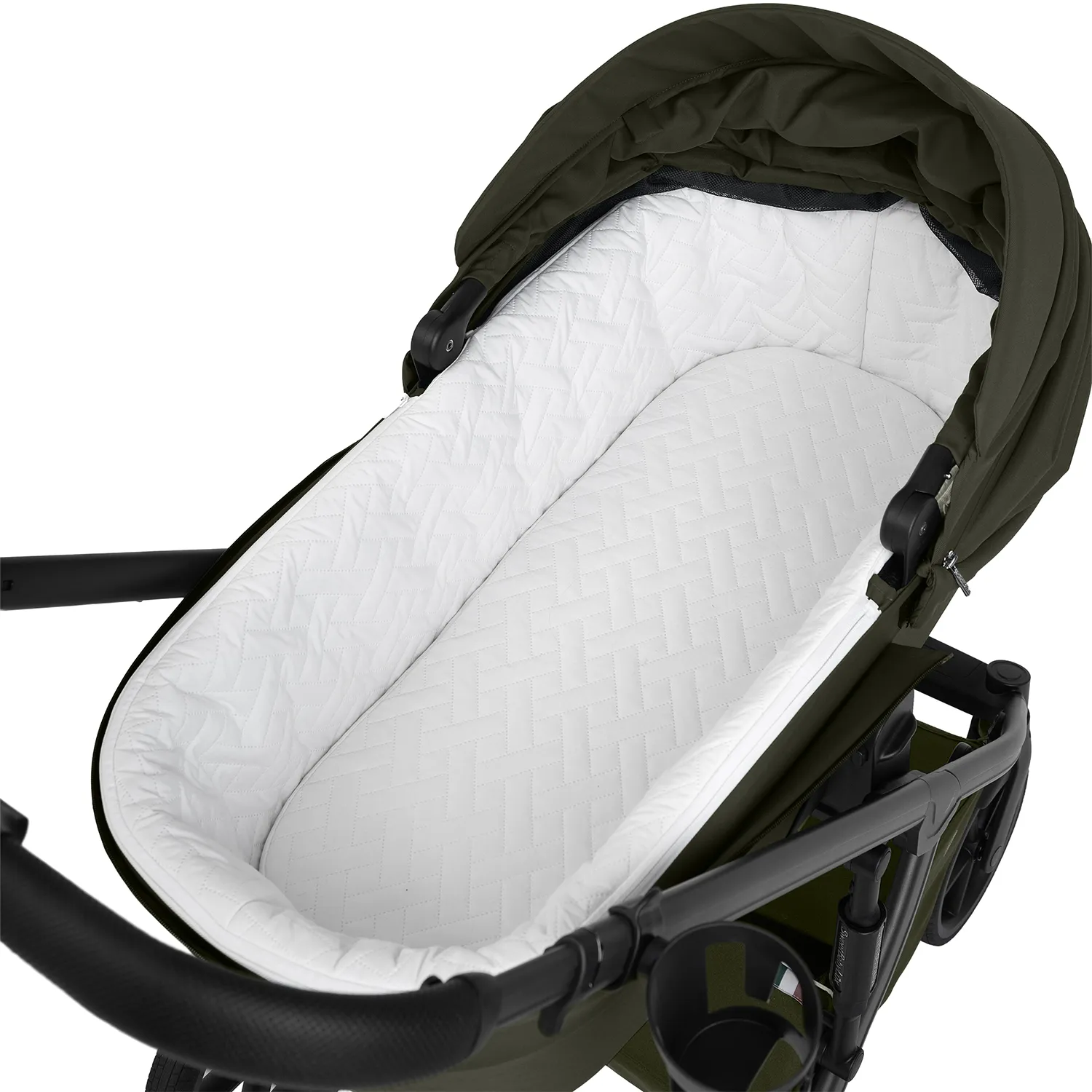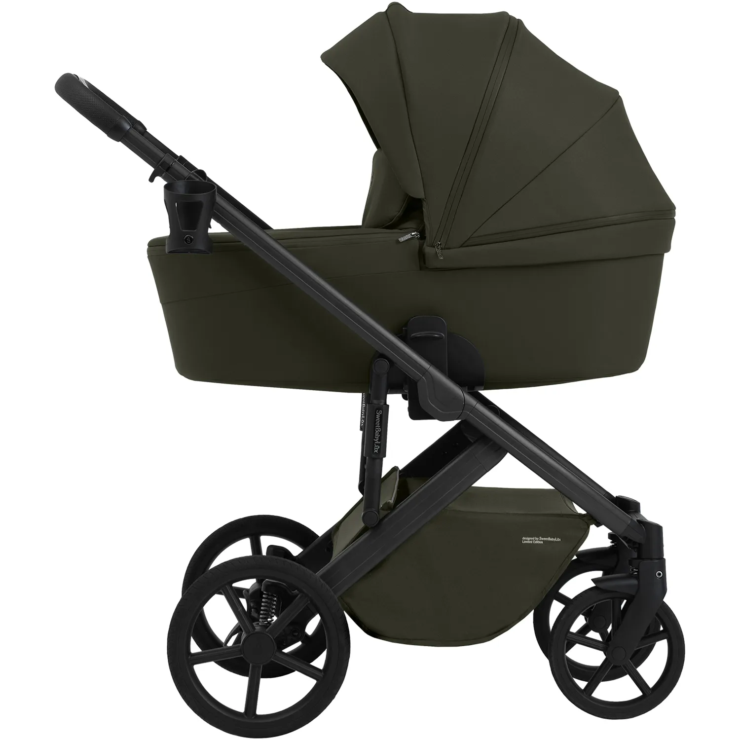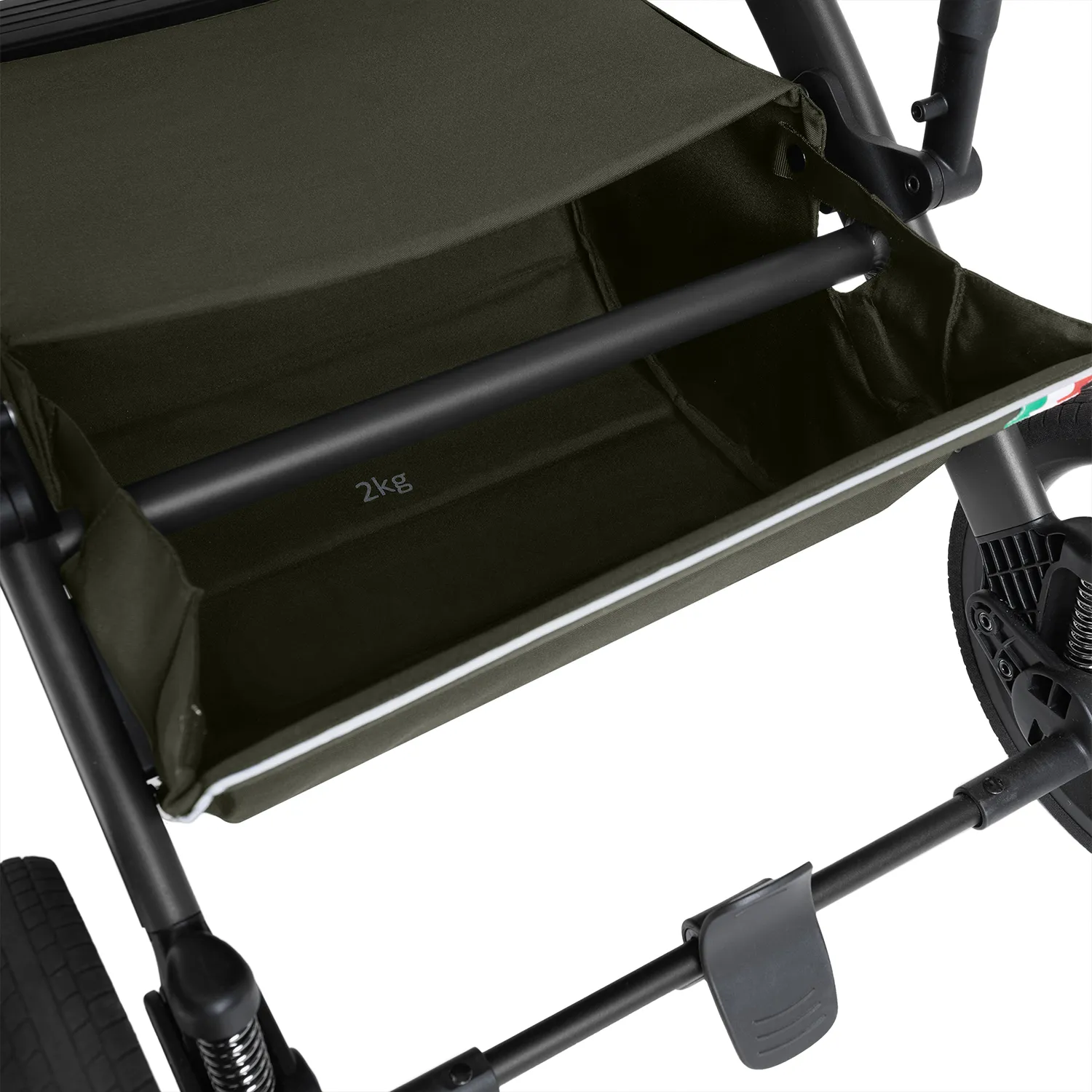 - цвет шасси в тон коляски (кроме расцветки Dark Green - шасси чёрного цвета)