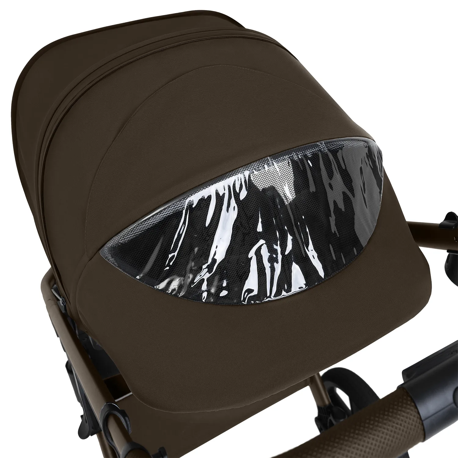 Глубокий капюшон с защитой от ультрафиолета UV50 обеспечивает много тени для комфортного микроклимата, а скрытые секции полностью закроют малыша до самых ножек.