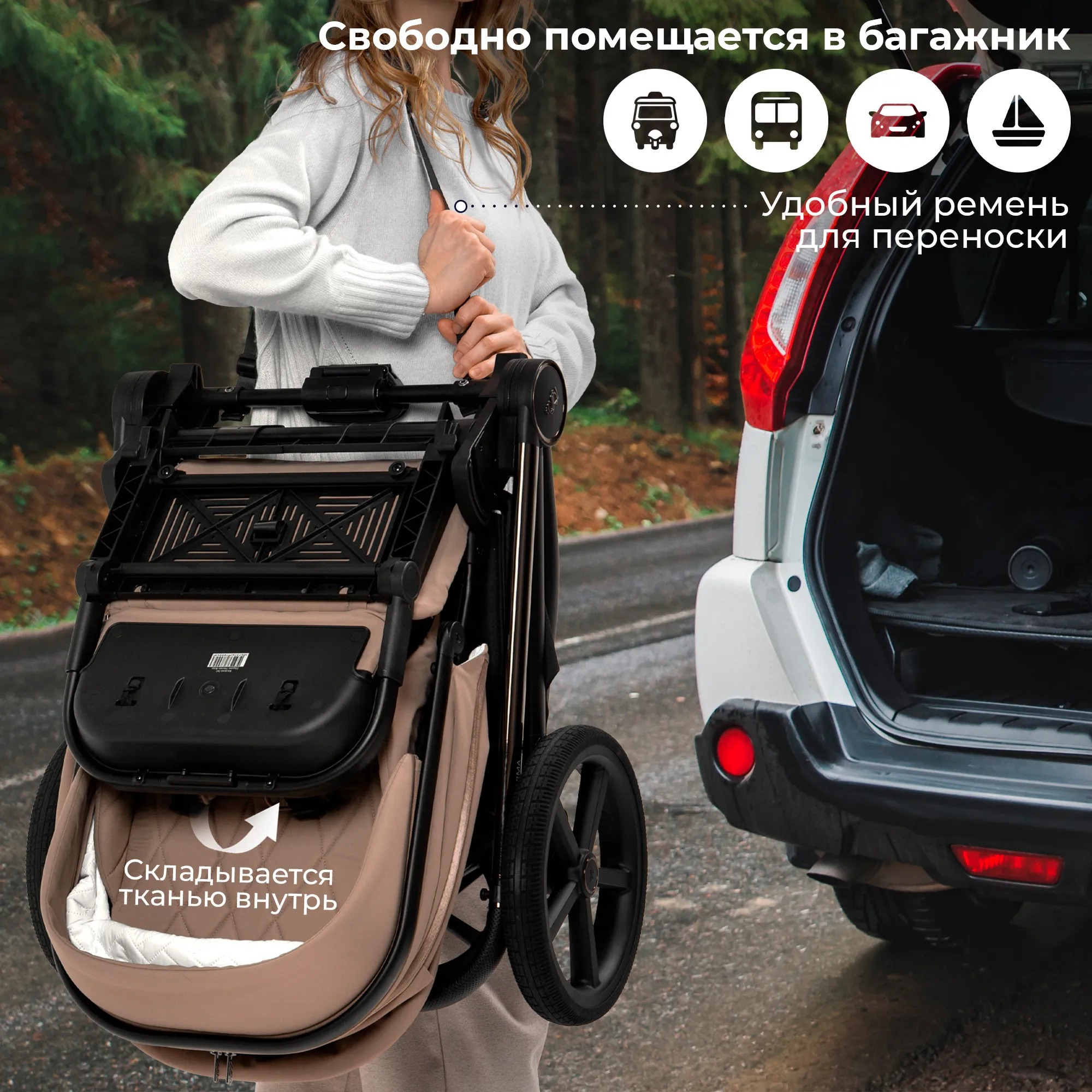 Обратите внимание на новые увеличенные колеса из высокомолекулярного полимера, аналогичных тем, что используются в кроссовках Nike. Эти колеса гарантируют отличную амортизацию и сцепление с различными покрытиями, что делает каждую прогулку плавной и комфортной. Даже на неровных поверхностях ваш малыш не почувствует ни малейшего дискомфорта, а родителям будет легко управлять коляской благодаря высокоэффективной амортизации как передних, так и задних колес.