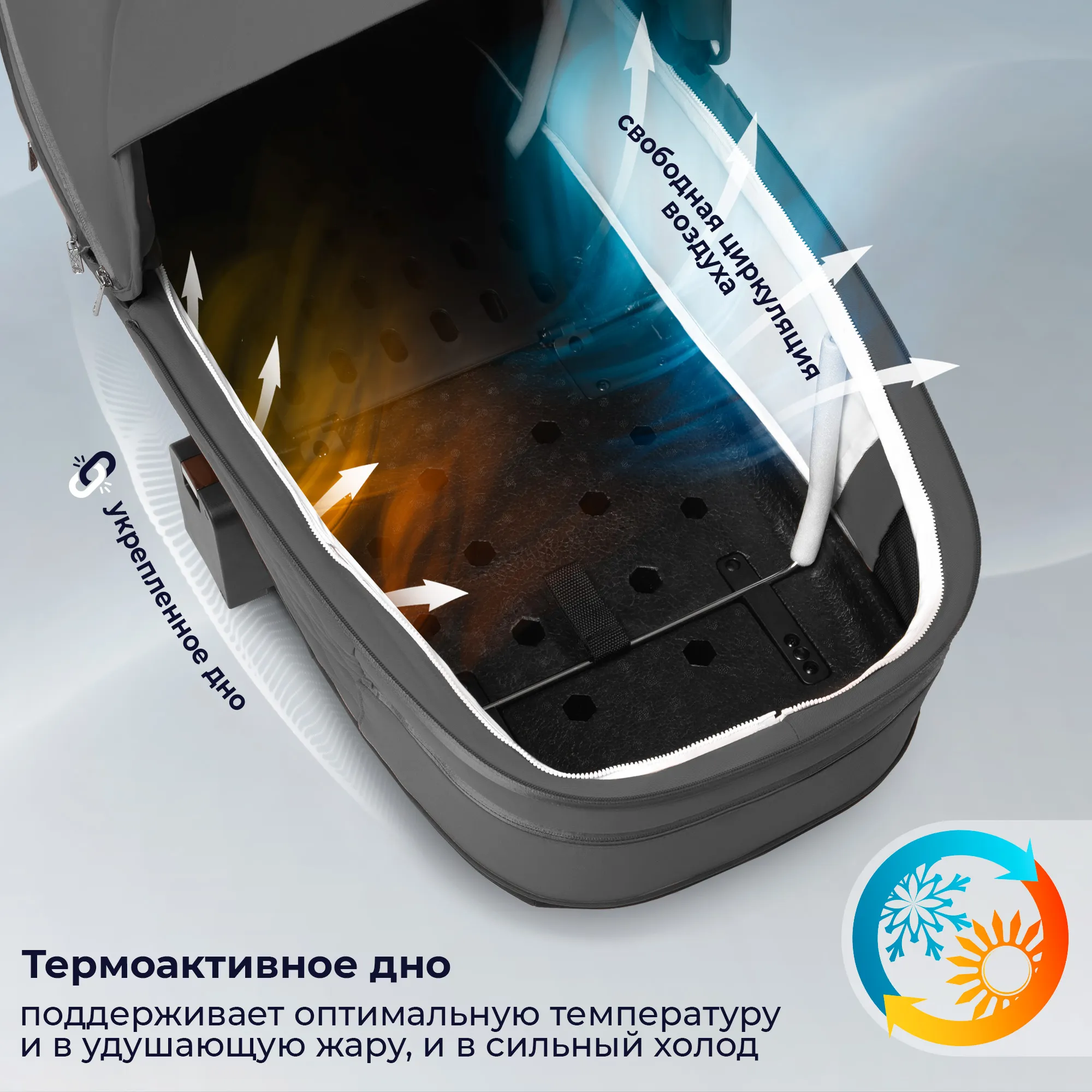 Уникальное термоактивное дно люльки поддерживает оптимальную температуру, позволяя вашему ребенку наслаждаться свежим воздухом и уютом даже в самые прохладные дни.