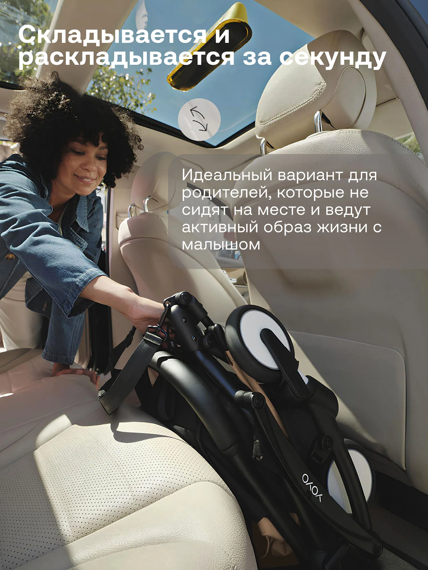 YOYO³ складывается вместе с рамой и подходит по размеру для большинства авиакомпаний, что делает эту коляску идеальной для повседневного использования и путешествий.