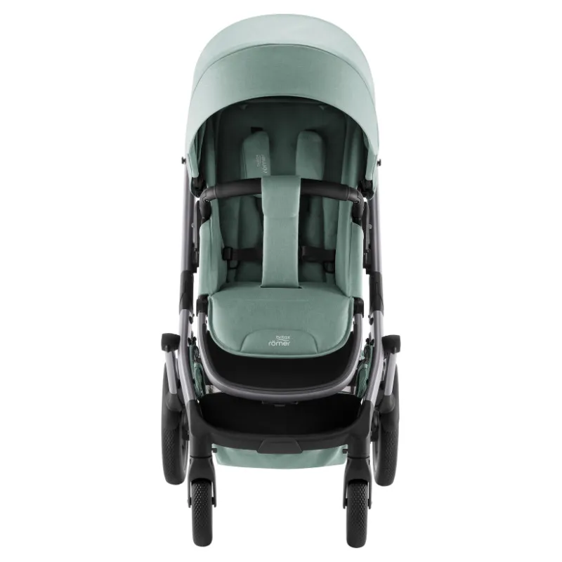 Дети растут быстро, и Britax Roemer Smile 5Z растет вместе с ними: коляска имеет две подножки. На сиденье и на шасси — чтобы ноги ребенка заняли комфортное и естественное положение.