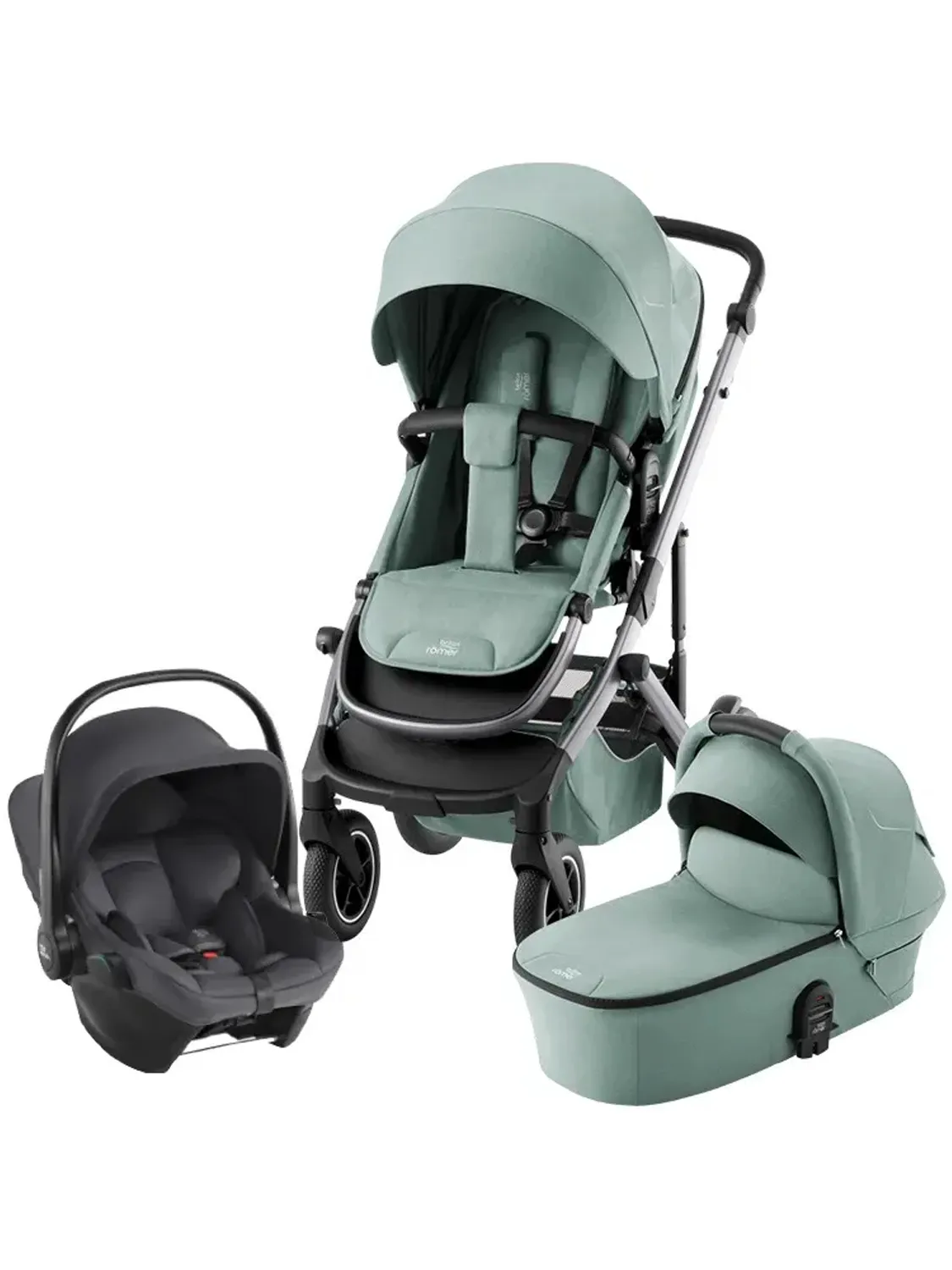 - в комплекте: шасси, прогулочный блок, люлька и автокресло 0+ Britax Roemer Baby-Safe Core