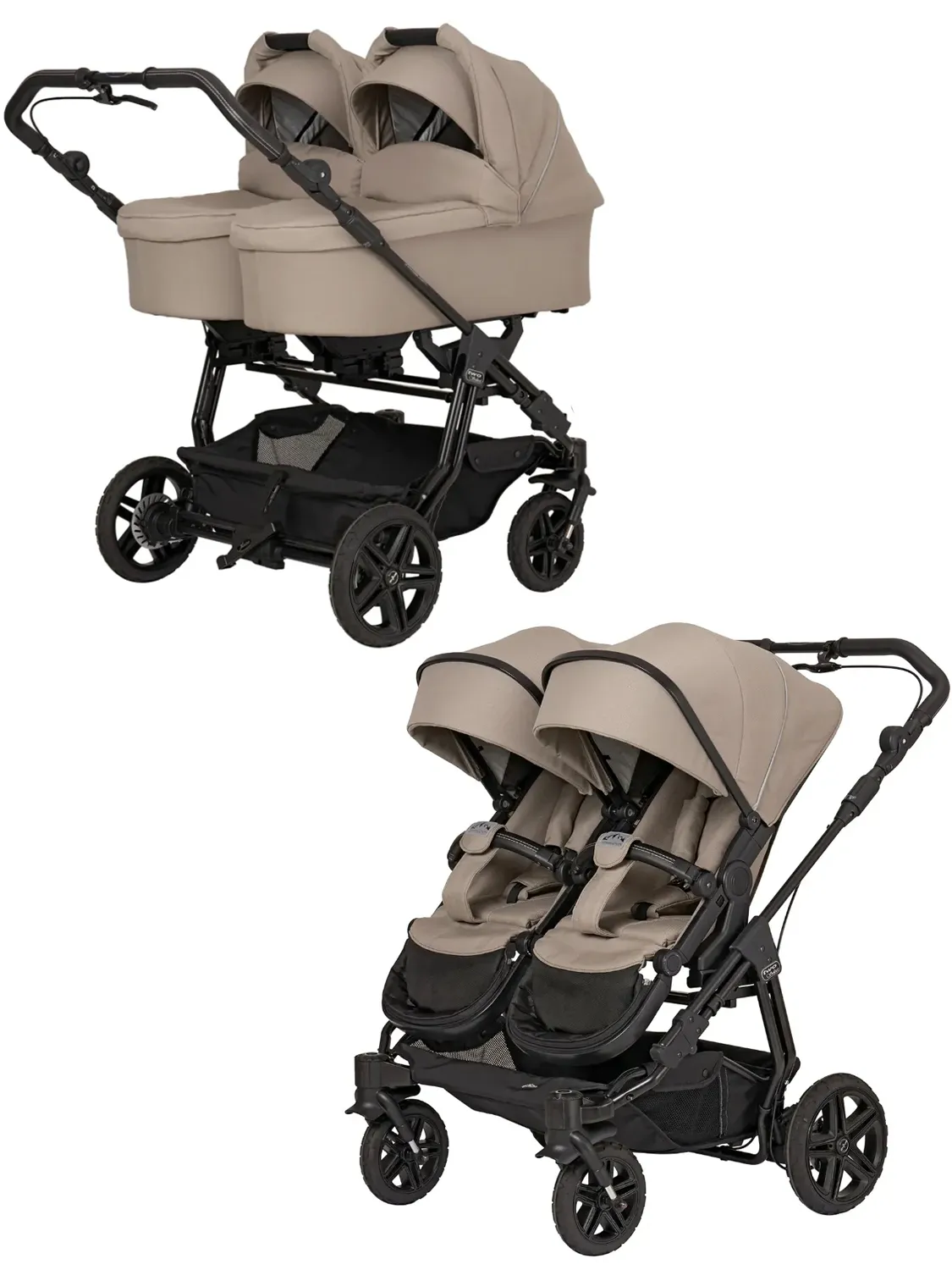 Коляска 2 в 1 для двойни Hartan Two Select Outdoor - люксовая модель спортивного дизайна, оснащенная ручным и дисковым тормозом