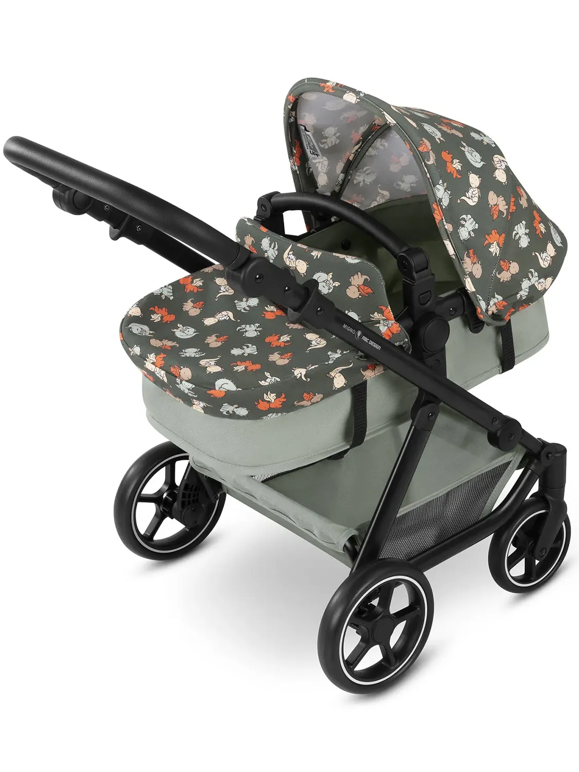 Благодаря поворотным передним колесам этой стильной кукольной коляской легко управлять. Вы можете отрегулировать ручку коляски по индивидуальным потребностям вашего ребенка. Поменять люльку на сиденье прогулочной коляски можно так же просто, как и на взрослой коляске, — просто нажмите на кнопки на изящной раме. Бампер кукольной коляски легко снимается, что позволяет легко достать куклу.