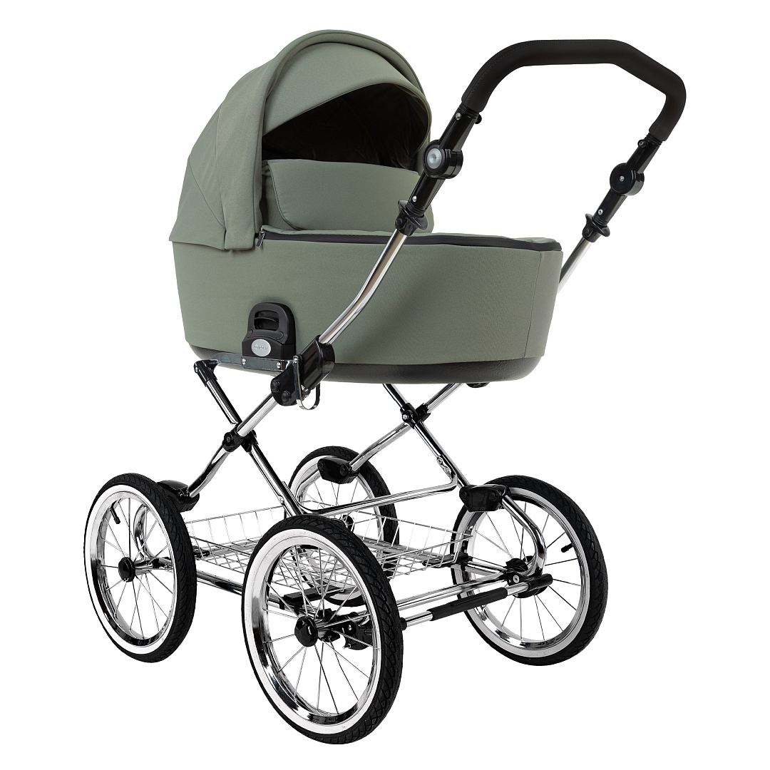 Главное достоинство такой рамы, что при движении по труднопроходимой местности колеса не вибрируют, коляска движется очень легко, а идеальная амортизация, основанная на кулисах, закрепленных в четырех точках, обеспечивает хороший сон для ребенка.
