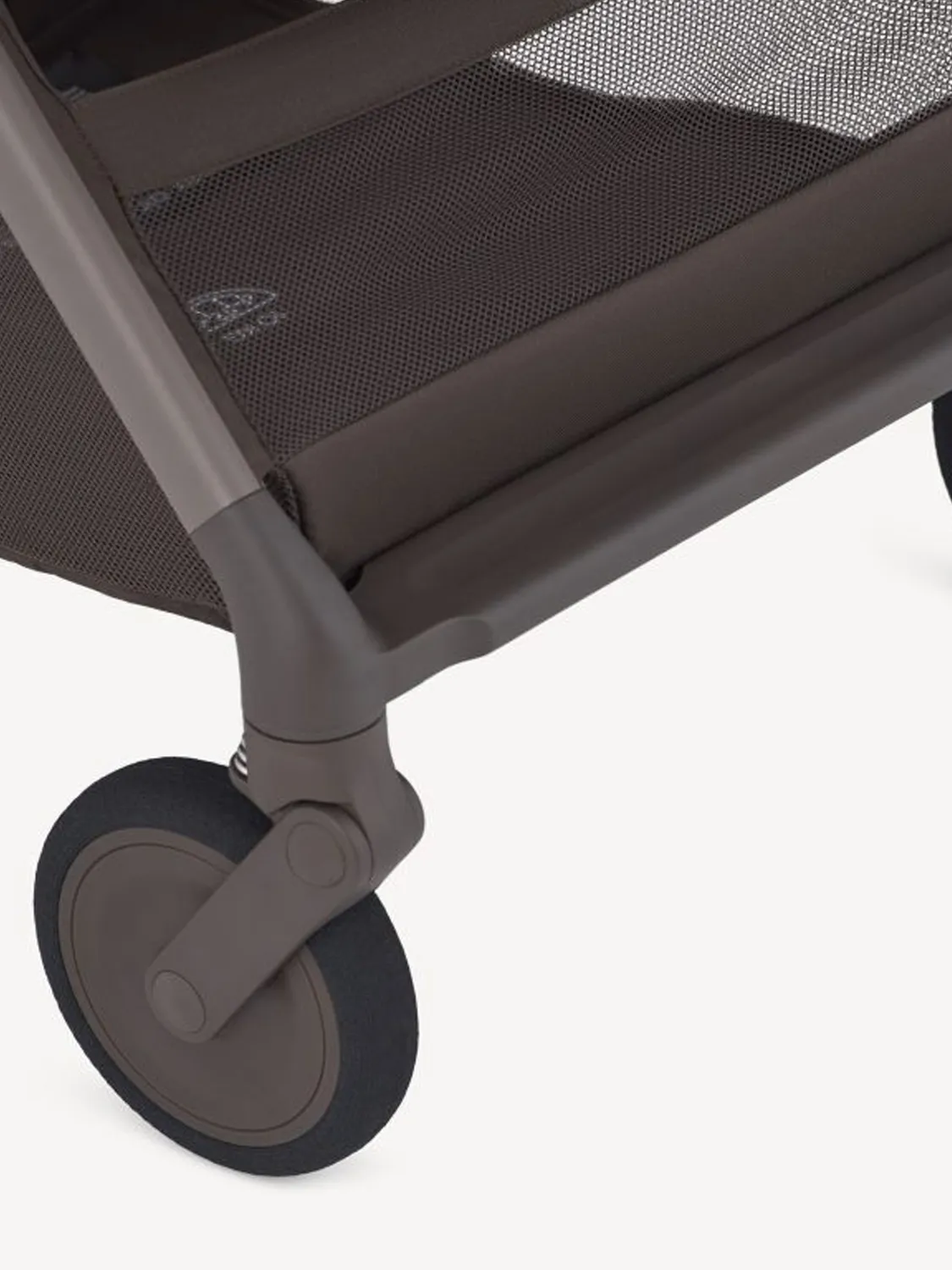 Коляска оснащена амортизацией на каждом колесе для повышения стабильности и более плавного хода по неровной поверхности.