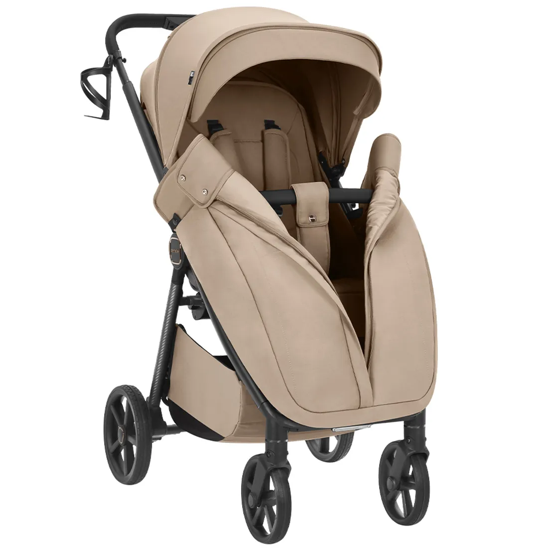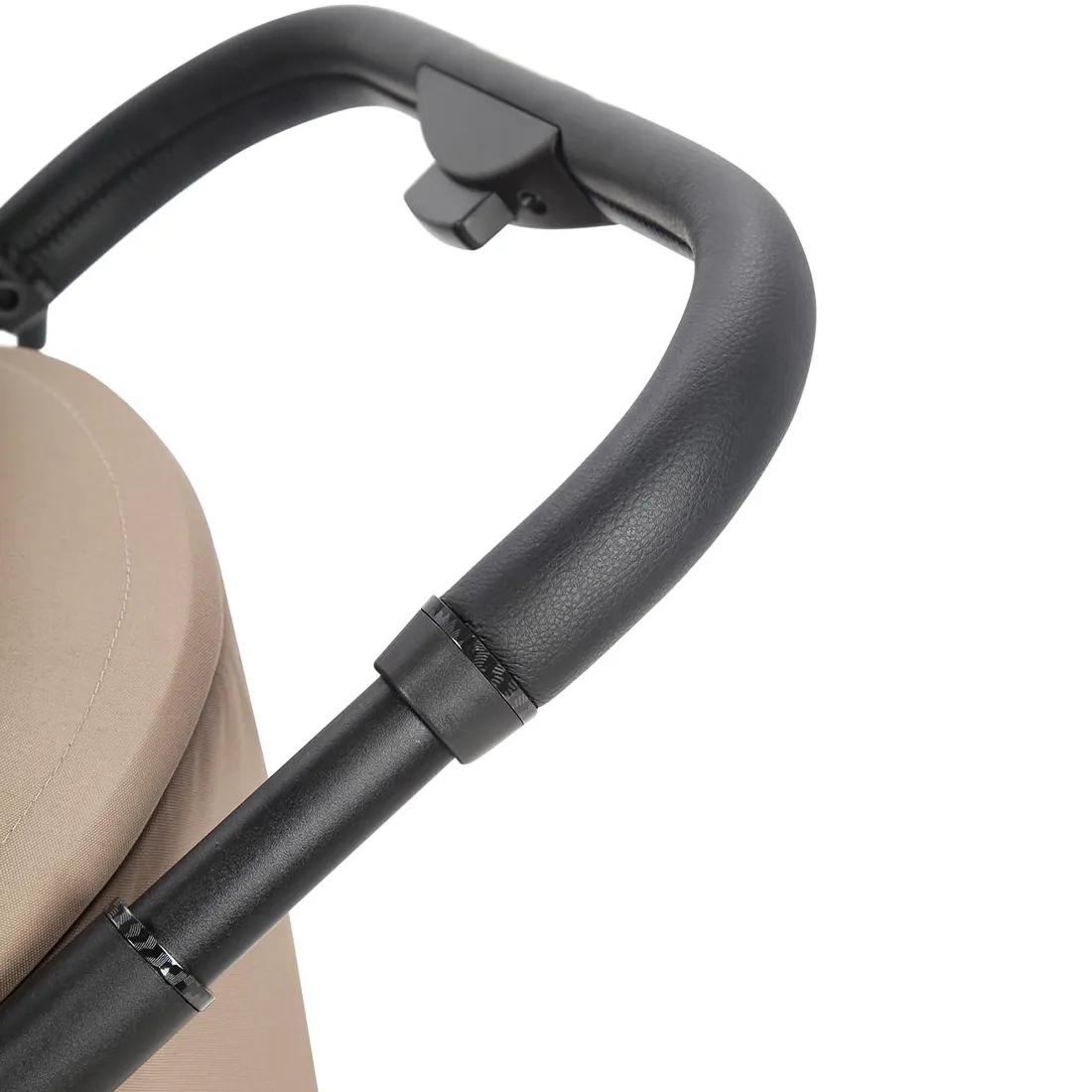 Фактурная и прочная экокожа на бампере и ручке коляски дополняет образ, а изящные акценты расставляет эффектная фурнитура.