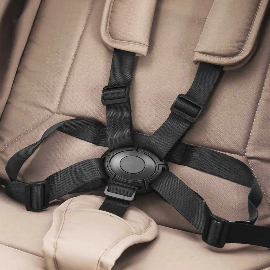 Безопасность и комфорт ребёнка обеспечивают пятиточечные ремни, поворотный бампер, ограничитель от сползания и LED фонарь. Доступны 3 режима света: сильный, средний и проблесковый (заряжается с помощью USB-кабеля).