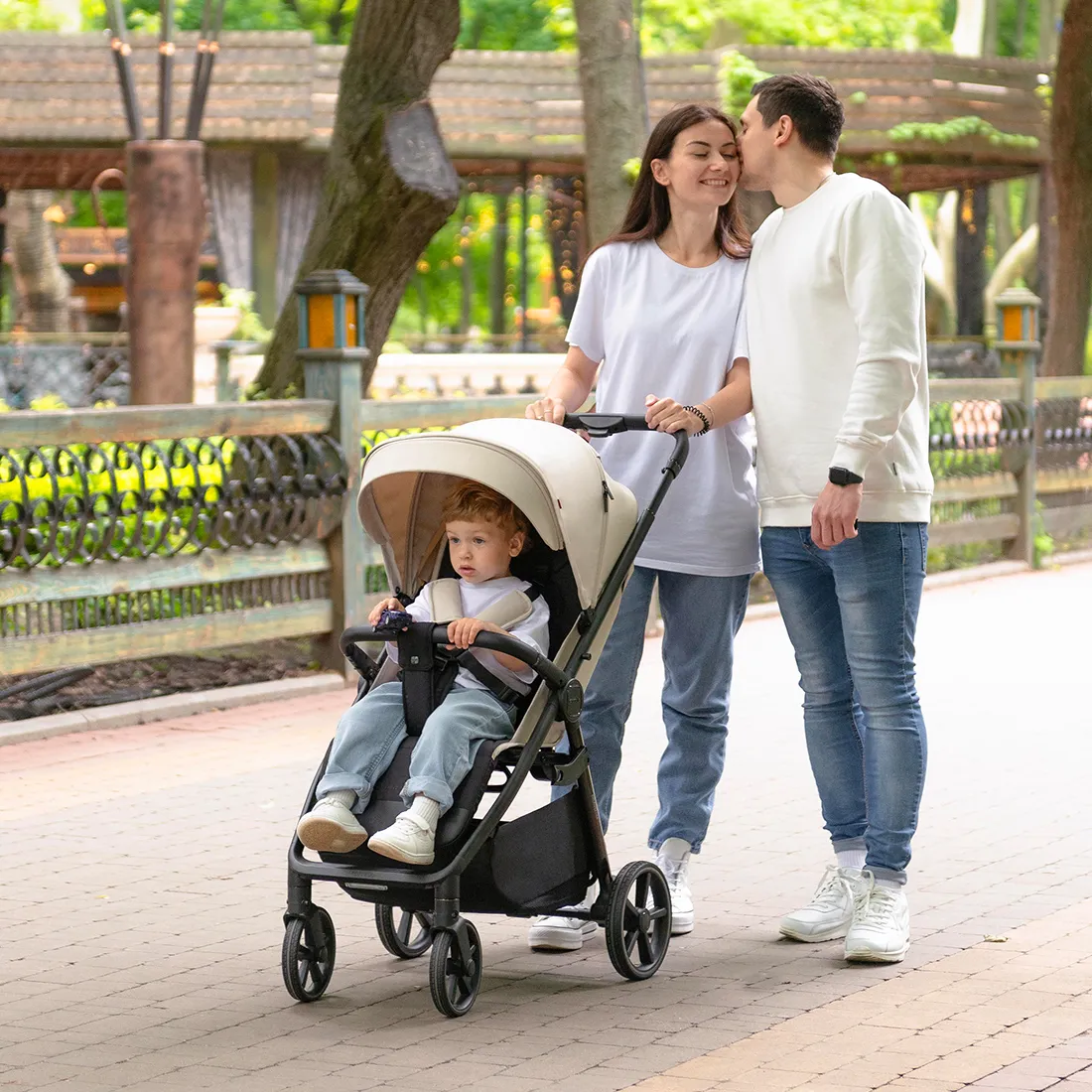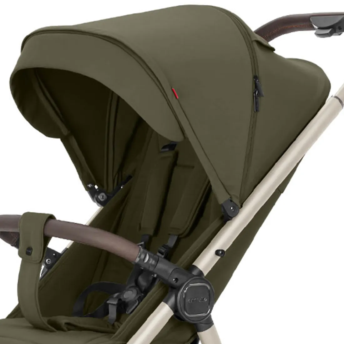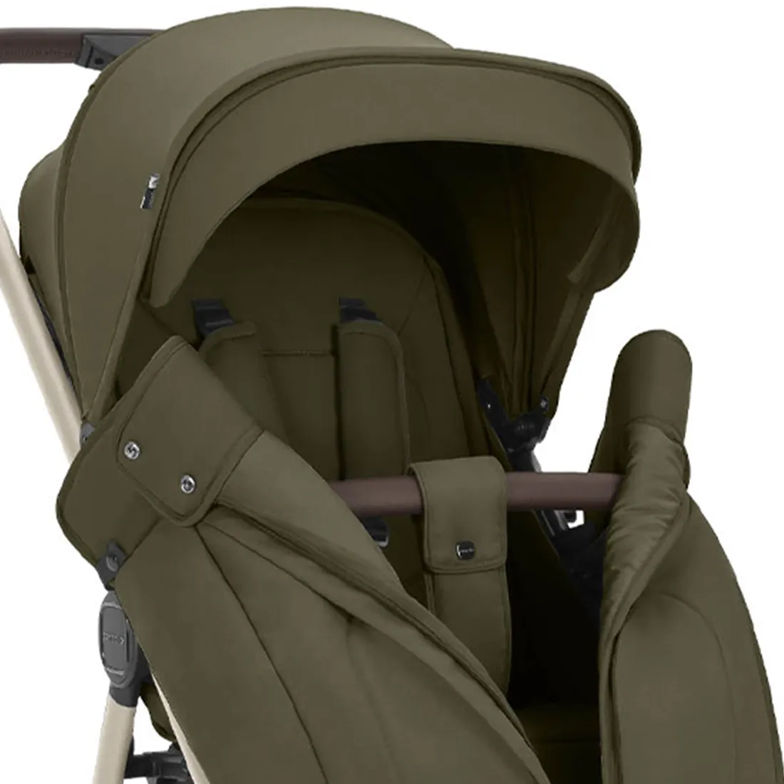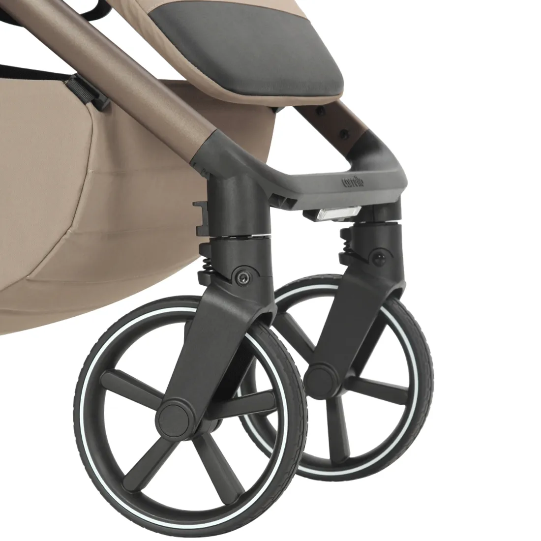 Фактурная и прочная экокожа на бампере и ручке коляски дополняет образ, а изящные акценты расставляет эффектная фурнитура.